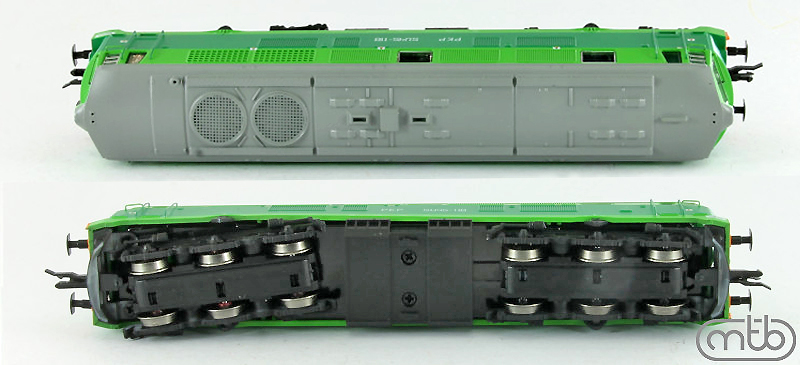měřítko 1:120 - rozchod kolejí 12 mm osvětlení - 3 reflektory vpředu, 2 světla vzadu, přepínatelné podle směru jízdy 6 hnaných náprav 0 bandážovaných náprav kinematika krátkého spřáhla (KKK) podle normy NEM 358 digitální rozhraní podle NEM 658 s konektorem PluX16 pojezd s kuličkovými ložisky 156 mm - celková délka modelu přes nárazníky 6 - celkový počet náprav nebo rozložení náprav 225 g - hmotnost netto - pouze model