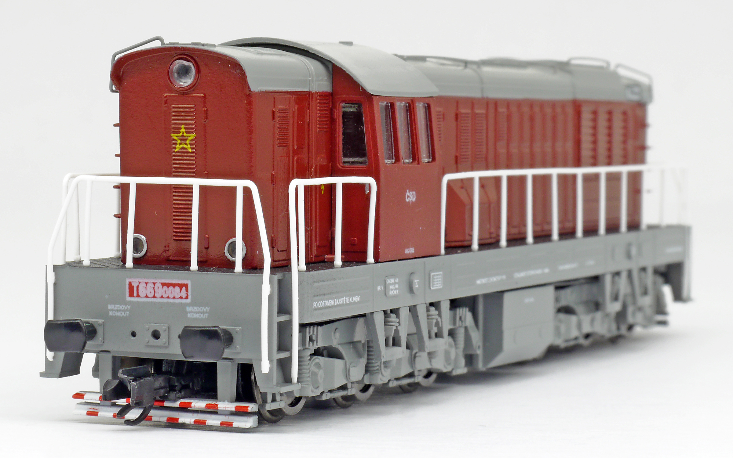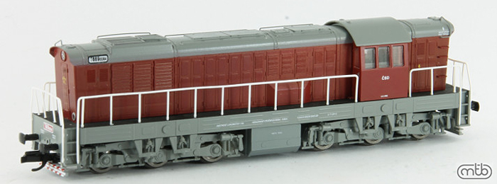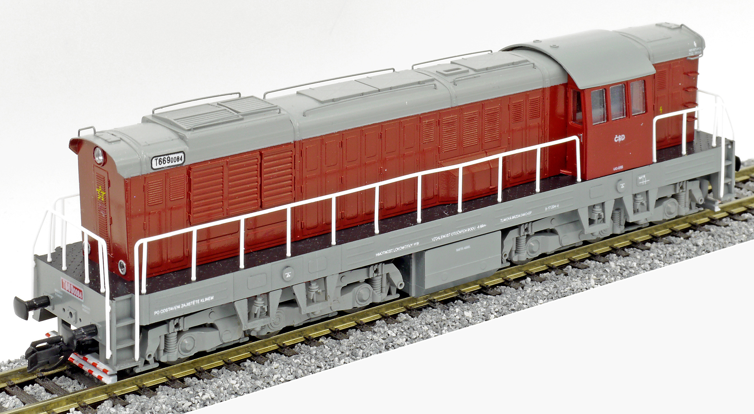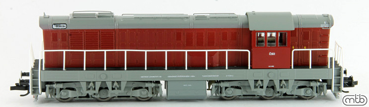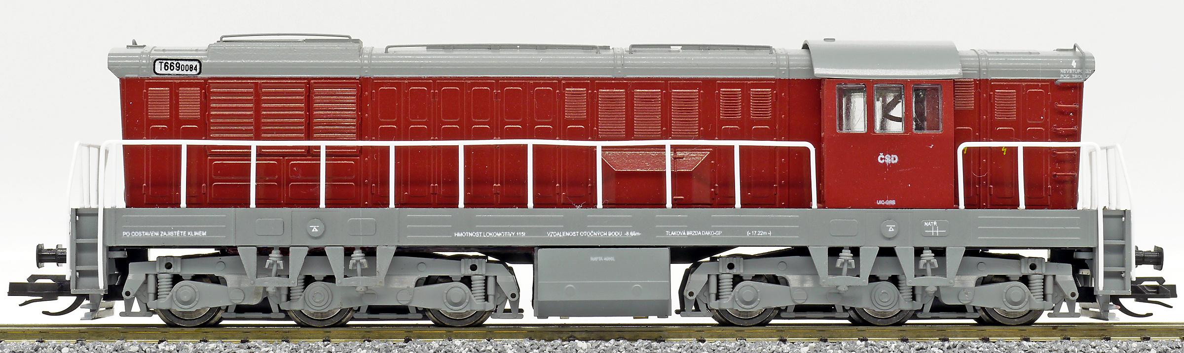 | dieselová lokomotiva červená-šedá střecha, rám a pojezd |