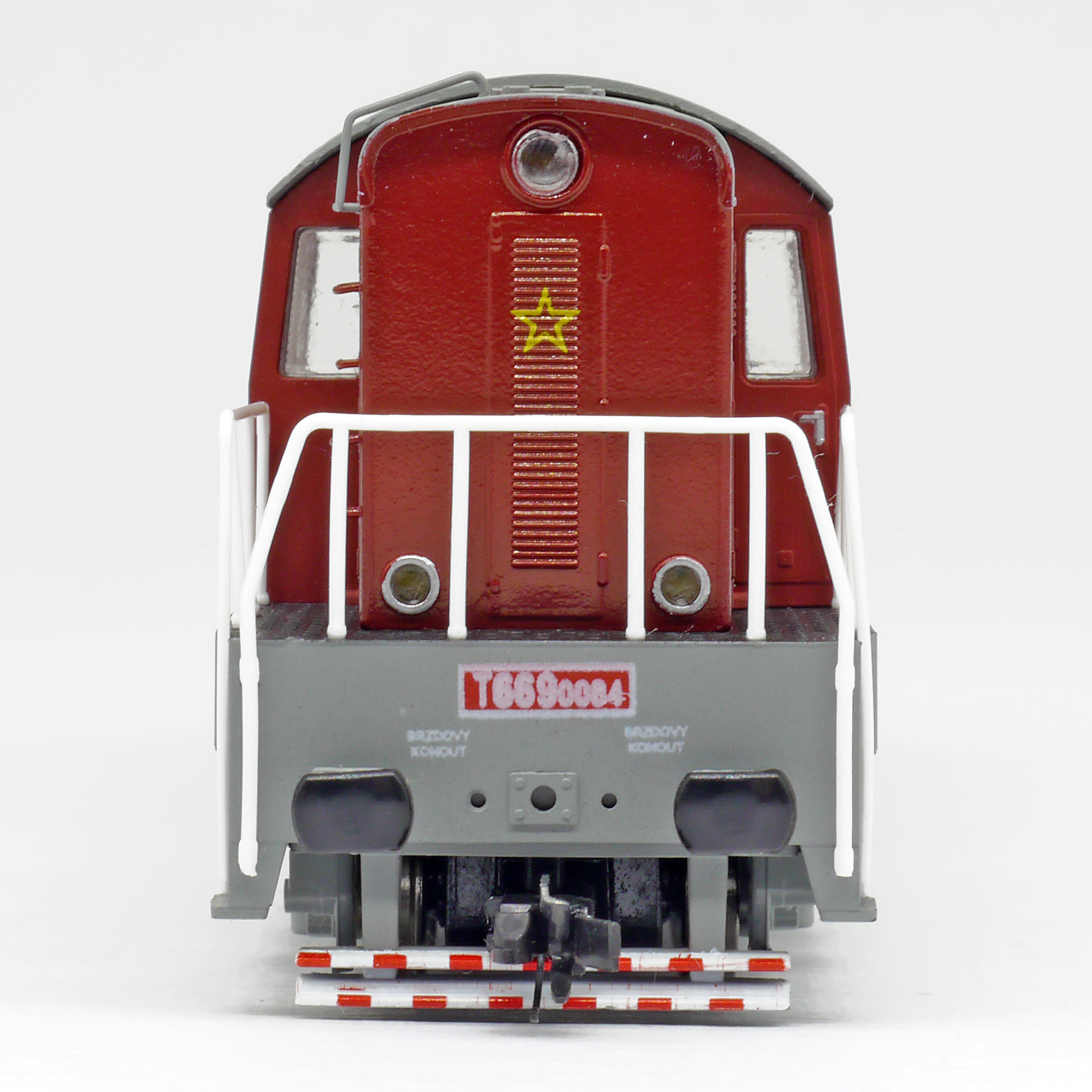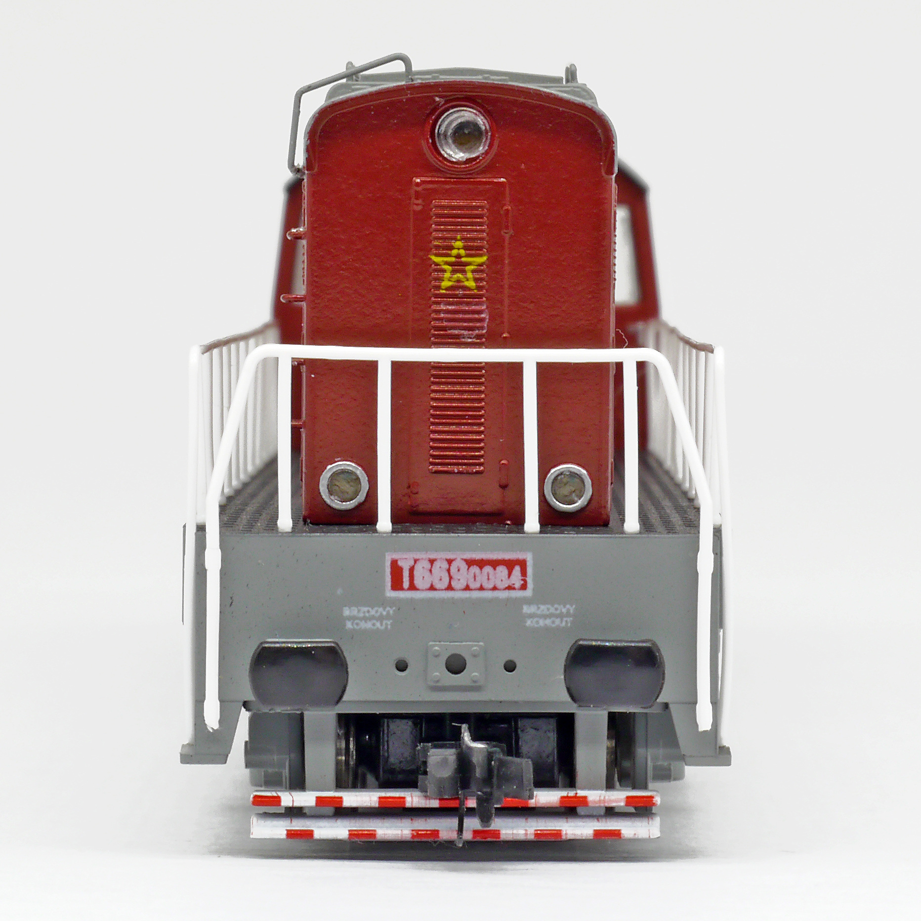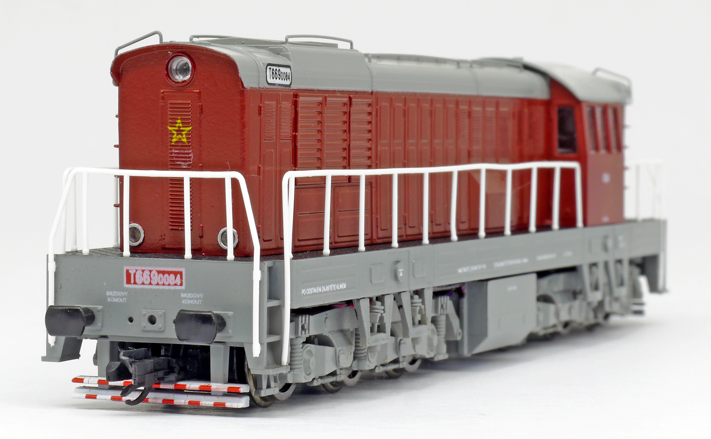 | dieselová lokomotiva červená-šedá střecha, rám a pojezd |