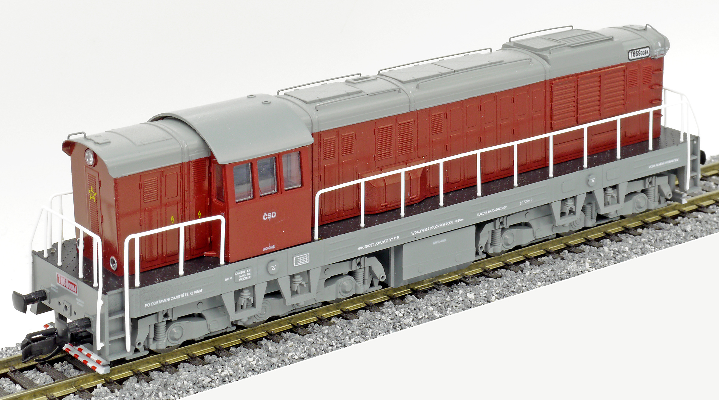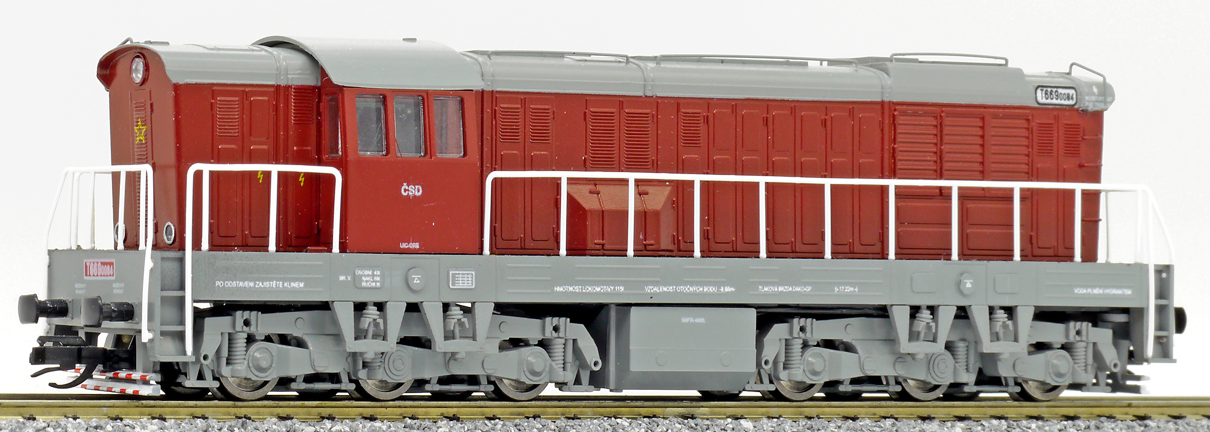 měřítko 1:120 - rozchod kolejí 12 mm osvětlení - 3 reflektory vpředu, 2 světla vzadu, přepínatelné podle směru jízdy 6 hnaných náprav 0 bandážovaných náprav kinematika krátkého spřáhla (KKK) podle normy NEM 358 digitální rozhraní podle NEM 662 s konektorem Next18 pojezd s kuličkovými ložisky 142 mm - celková délka modelu přes nárazníky 6 - celkový počet náprav nebo rozložení náprav 300 g - hmotnost brutto - model včetně prodejního obalu 205 g - hmotnost netto - pouze model