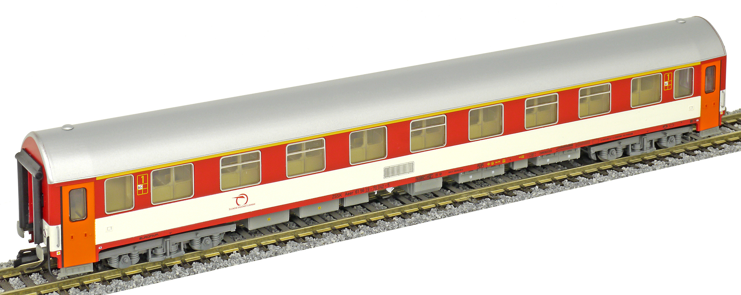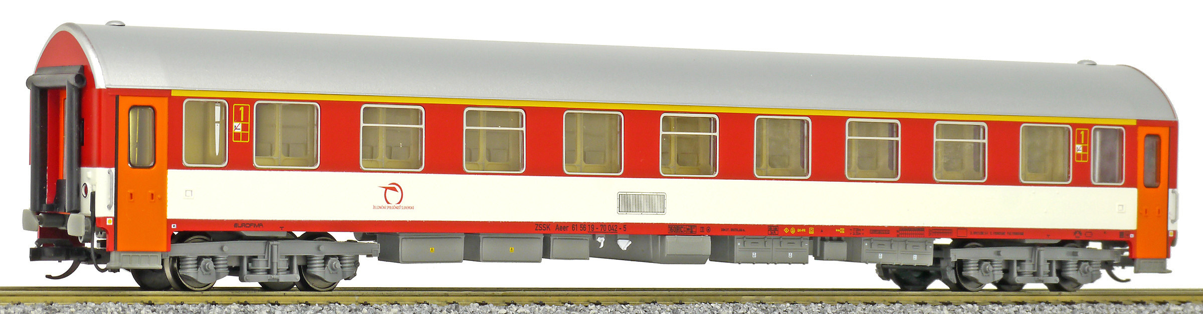 | rychlíkový vůz červený-bílý s šedou střechou 1. tř. |