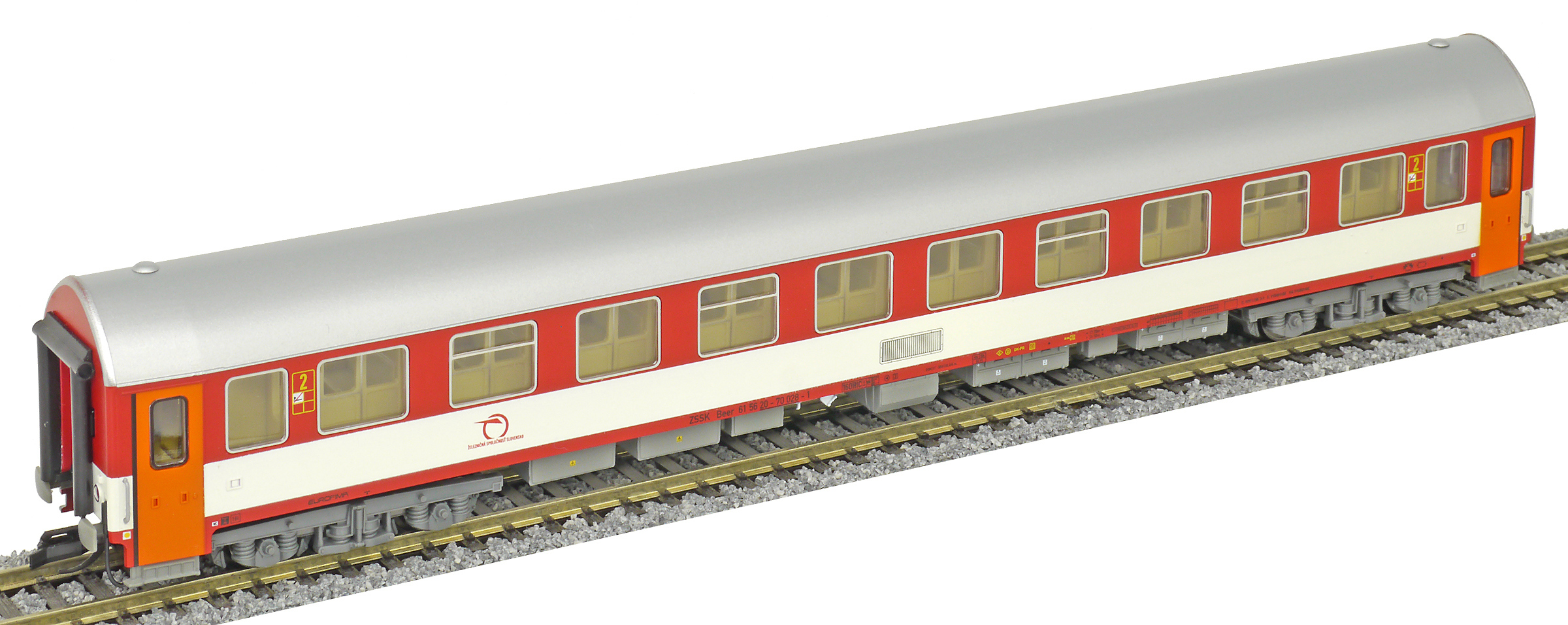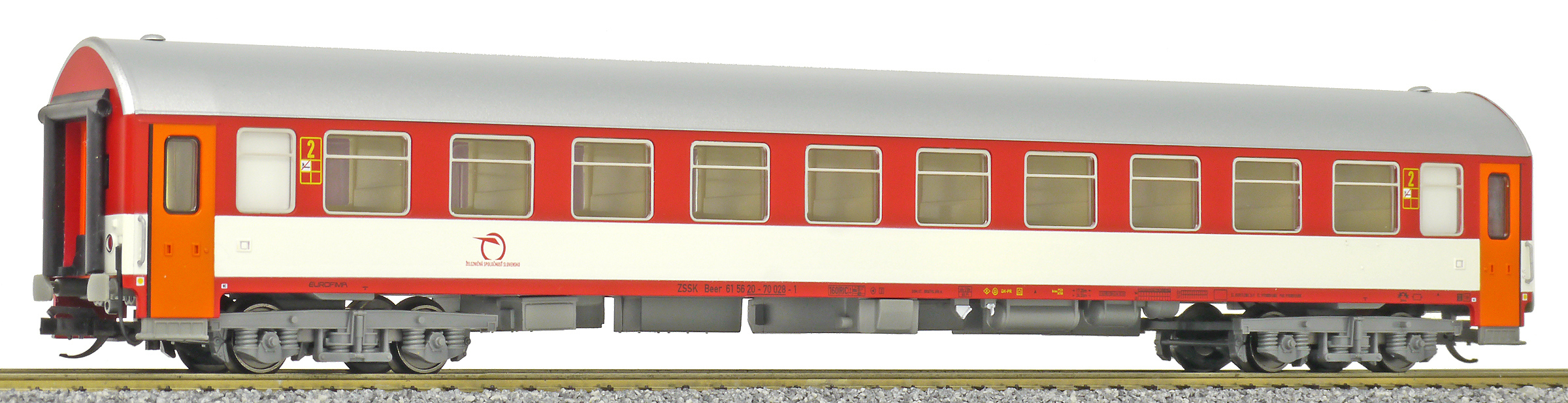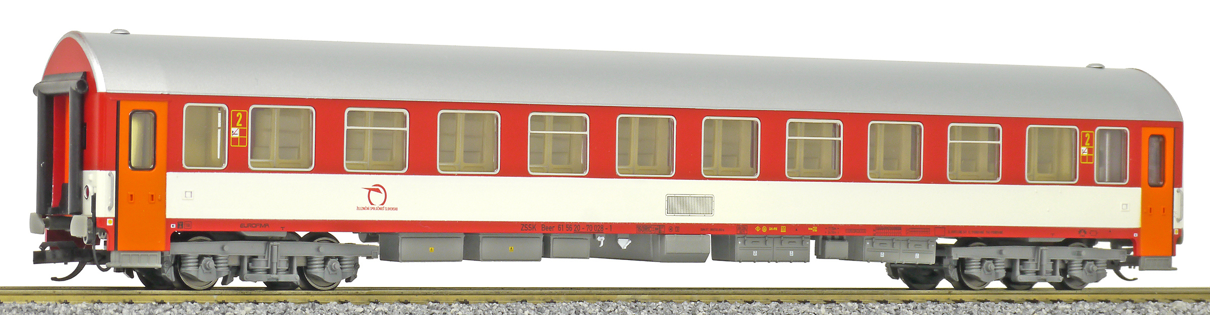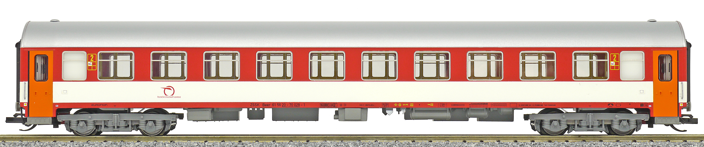 | rychlíkový vůz červený-bílý s šedou střechou 2. tř. |