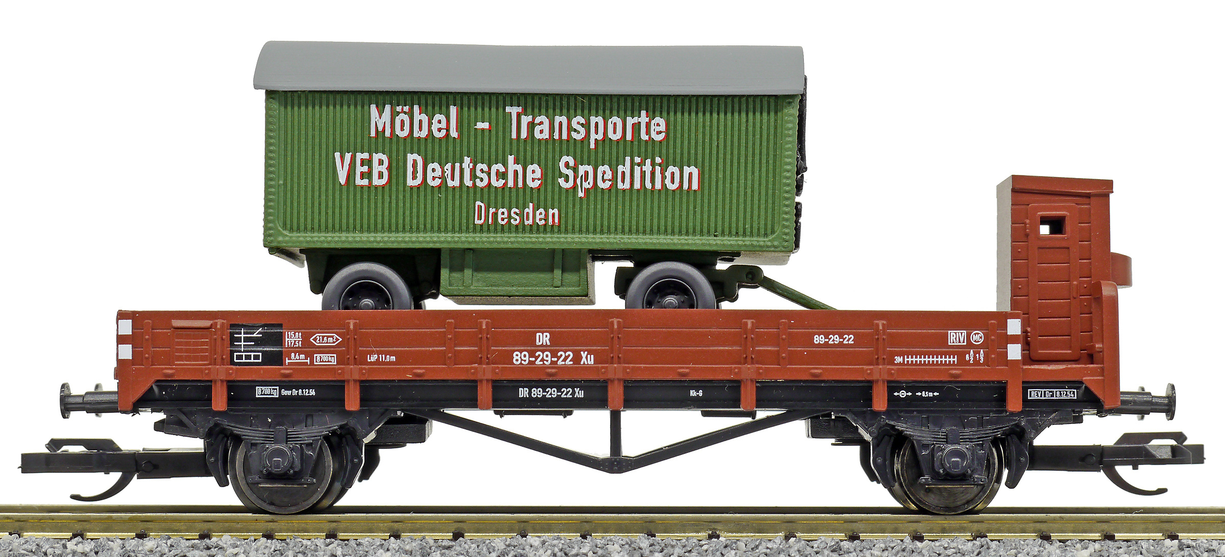 | nízkostěnný nákladní vůz ložený návěsem na nábytek |