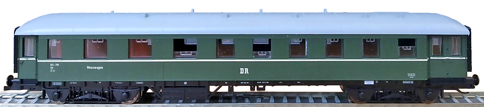 | měřící vůz do pracovního vlaku zelený s šedou střechou |