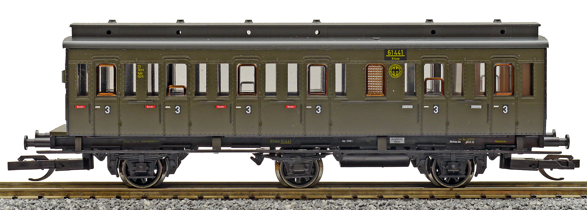 | oddílový osobní vůz tmavě zelený s černou střechou 3. tř. |