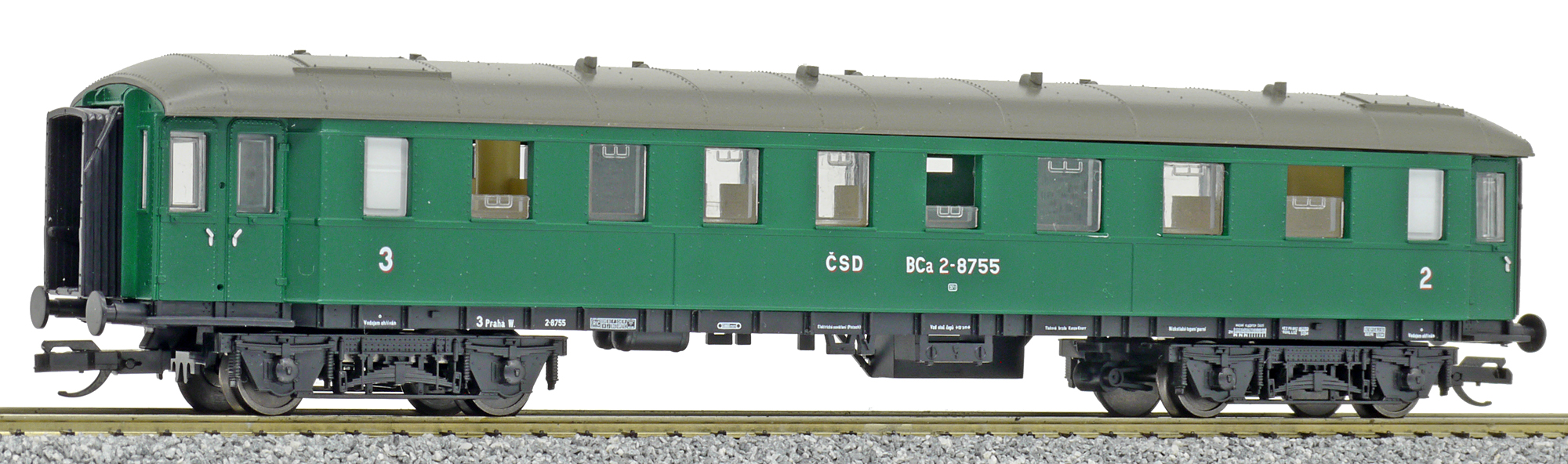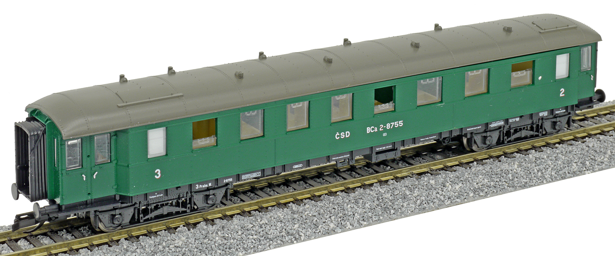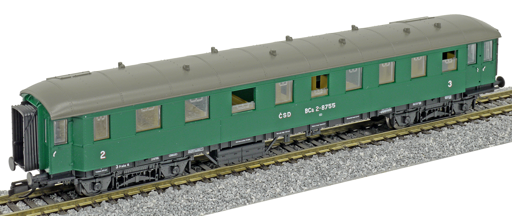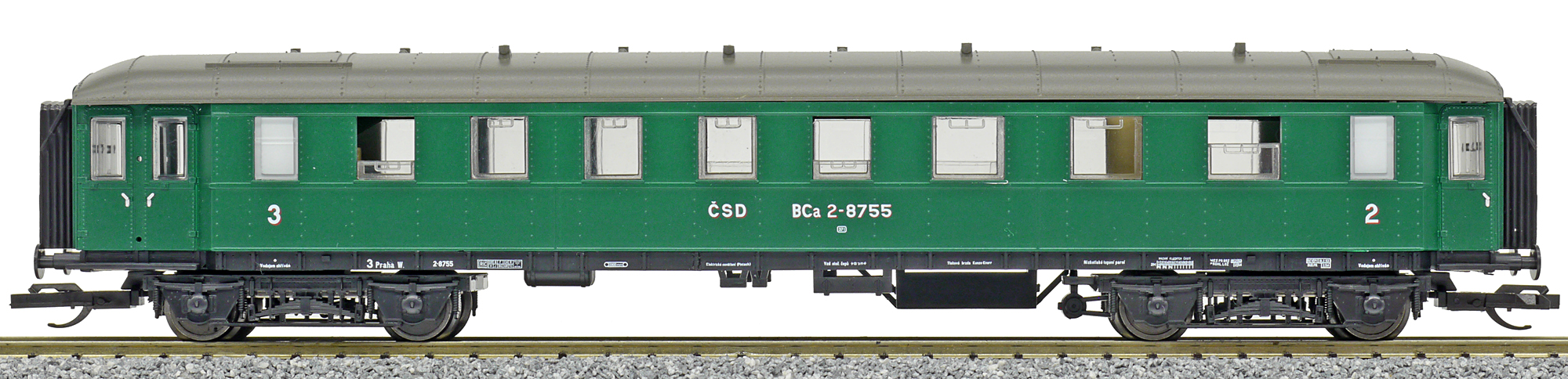 | osobní vůz zelený s tmavě šedou střechou 2./3. tř. |
