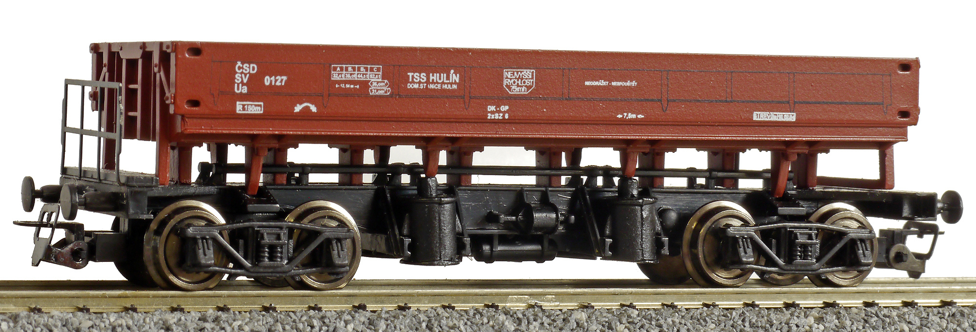 Popis   nákladní vůz oboustranně výsypný červený s černým pojezdem