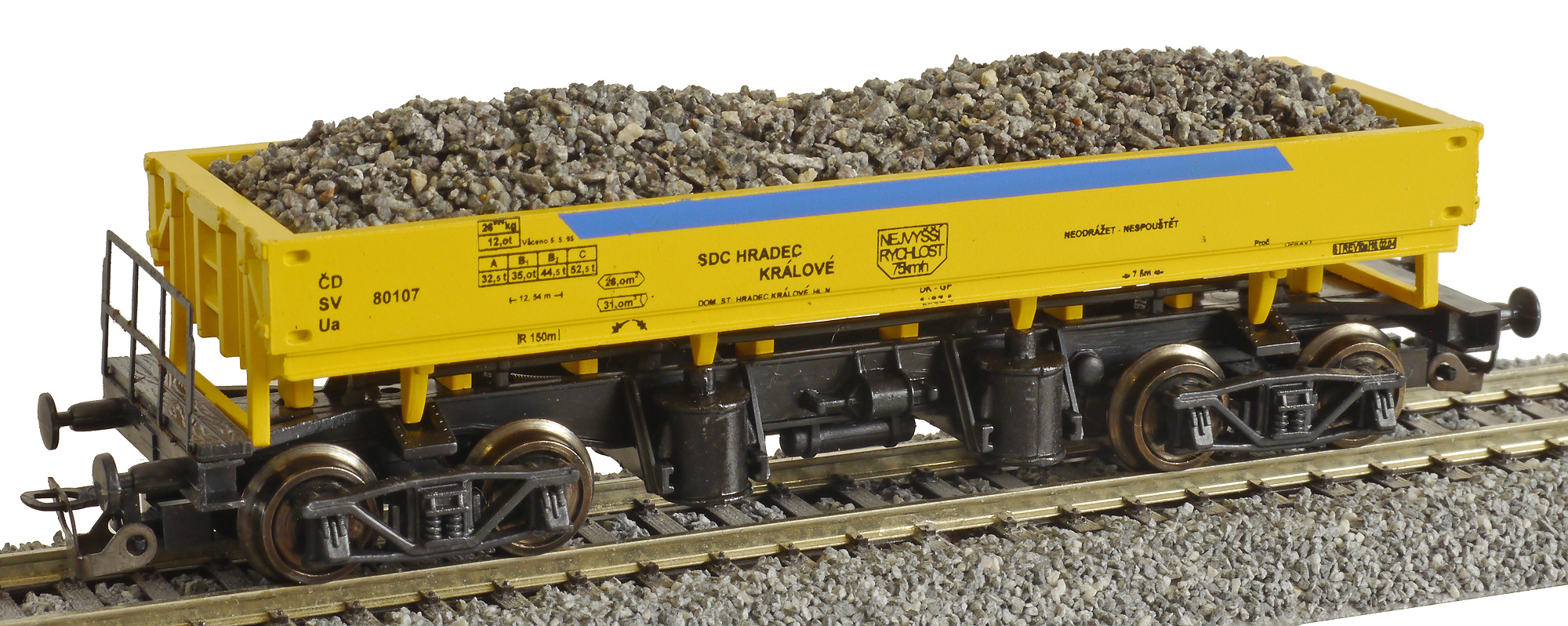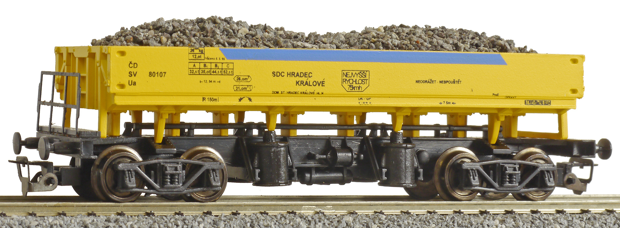 Popis   nákladní vůz oboustranně výsypný žlutý s černým pojezdem a s nákladem