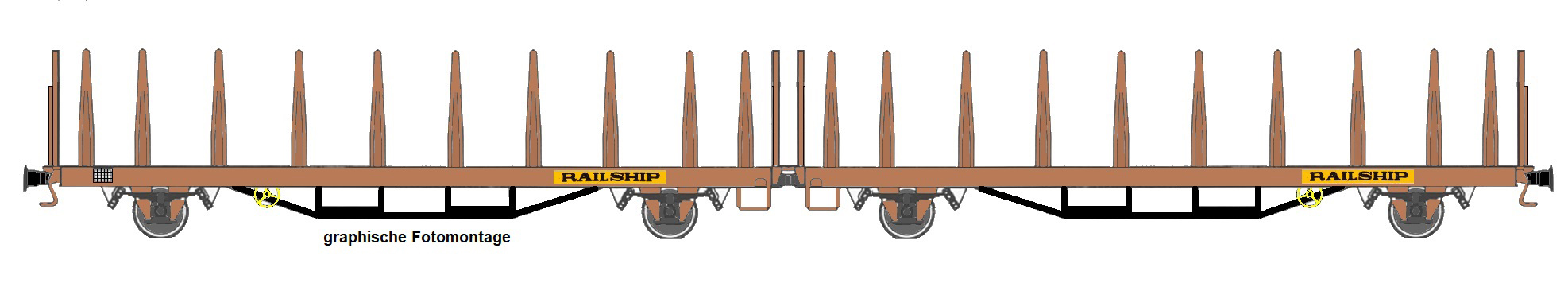 | dvojdílný plošinový nákladní vůz červenohnědý „Railship“ |