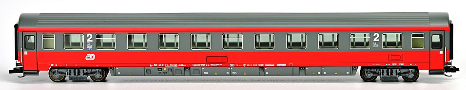 | rychlíkový vůz červený-tmavěšedý v barvách ÖBB 2. tř. |