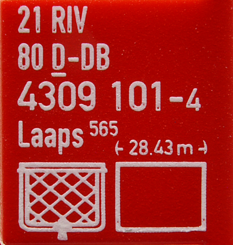 | • 21 80 4309 101-4 | → | nákladní, nezávislé nápravy, pevný rozchod, ve vlastnictví železniční správy, RIV, PPV |