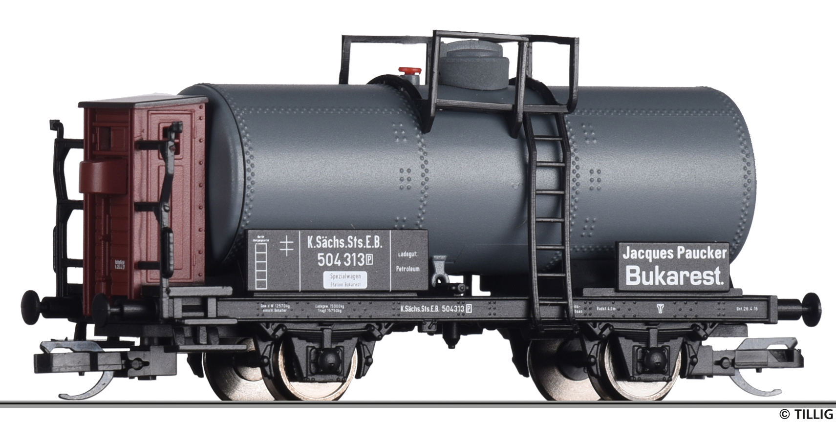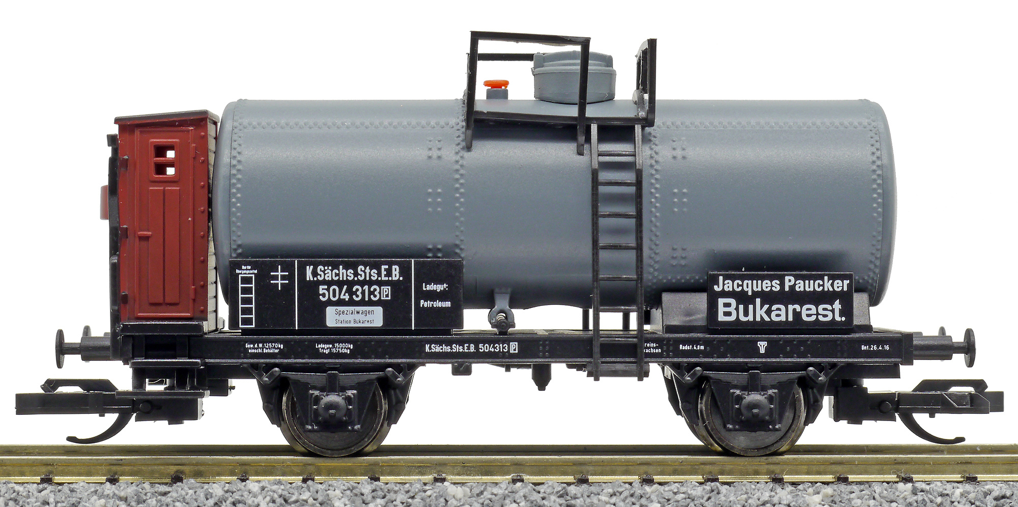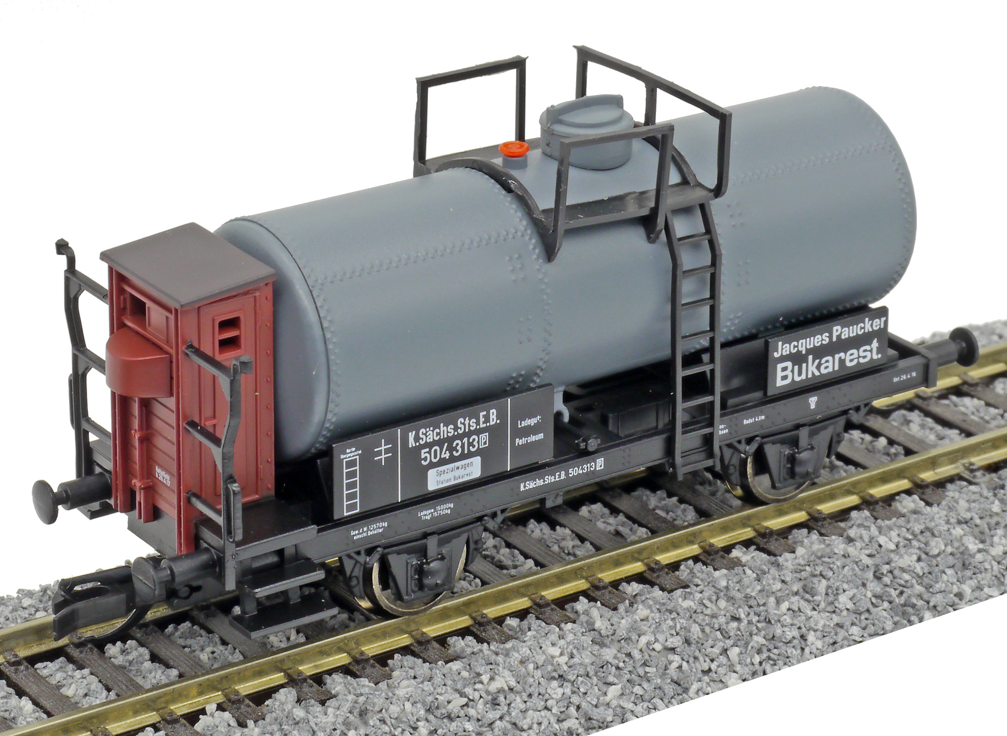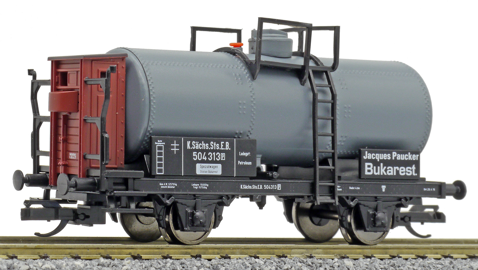 | kotlový vůz tmavý s brzdařskou budkou „Jacques Paucker, Bukarest“ |