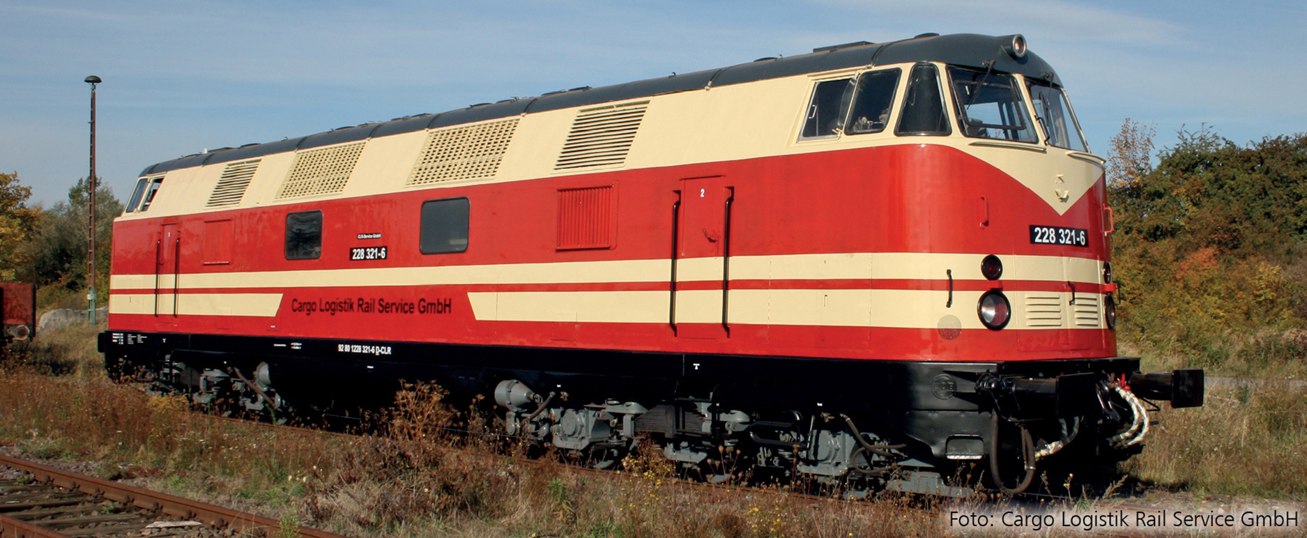 | dieselová lokomotiva červená-slonová kost Cargo Logistik Rail Service GmbH |