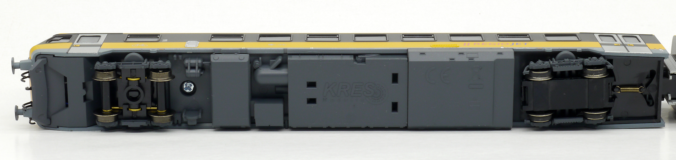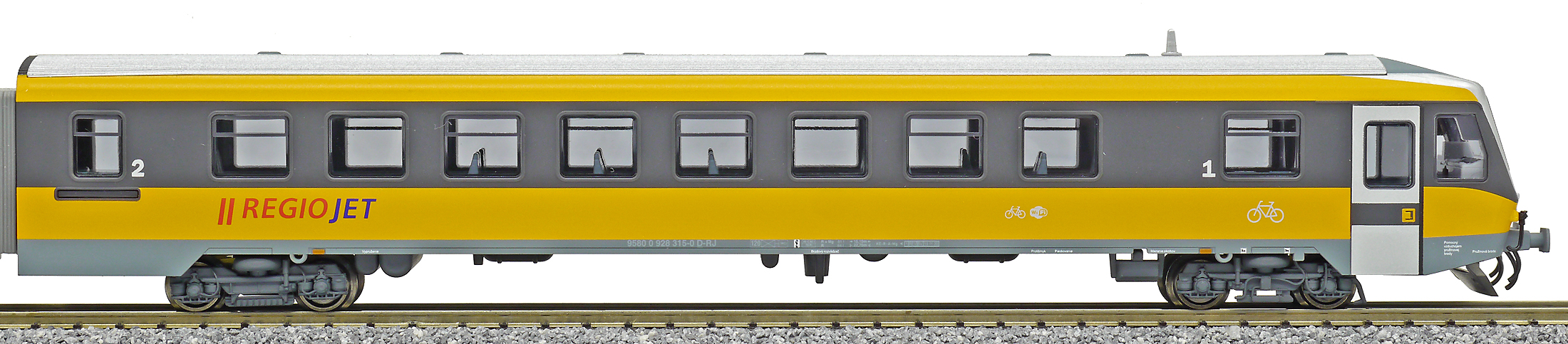 měřítko 1:120 - rozchod kolejí 12 mm osvětlení - 3 reflektory vpředu, 2 světla vzadu, přepínatelné podle směru jízdy vnitřní interiér vozu instalováno osvětlení interiéru digitální rozhraní podle NEM 651 s konektorem 6pin instalován lokomotivní digitální dekodér (DCC) 387 mm - celková délka modelu přes nárazníky 2x4 - celkový počet náprav nebo rozložení náprav