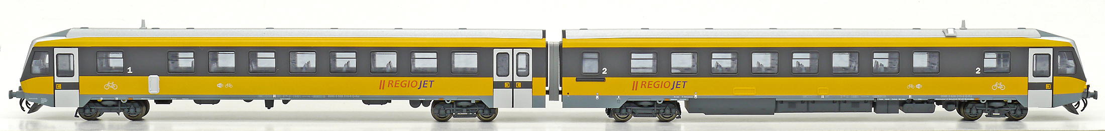 | motorová jednotka v barevném schematu „RegioJet“ |
