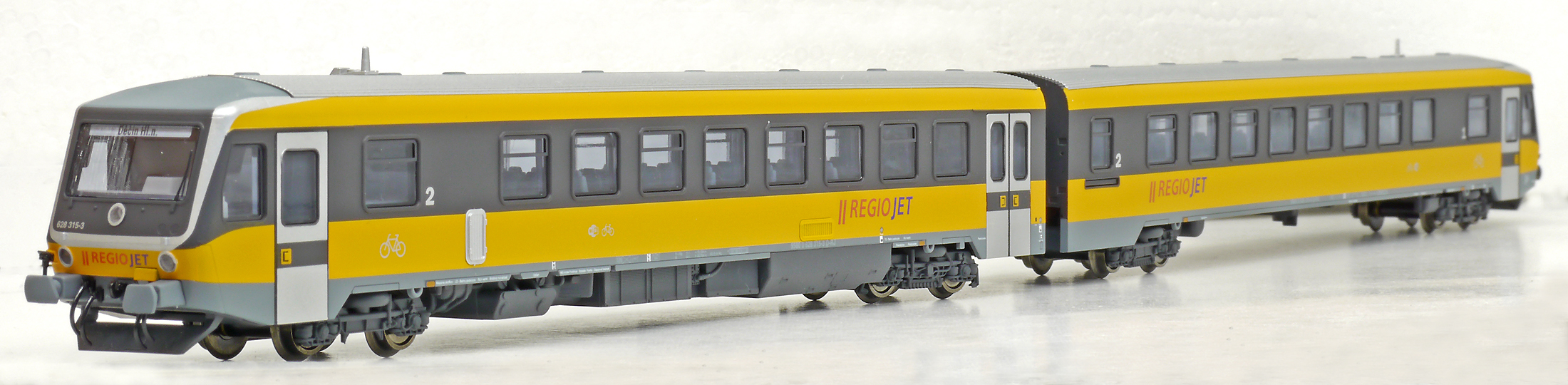 | motorová jednotka v barevném schematu „RegioJet“ |