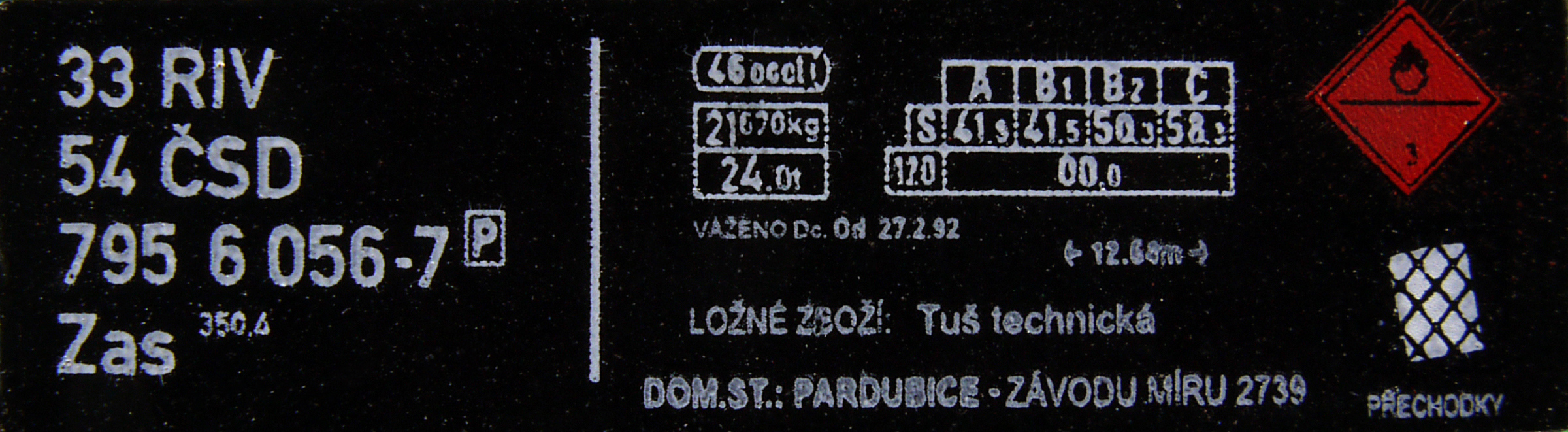 | • 33 54 795 6 056-7 | → | Z - kotlový (cisternový) vůz |