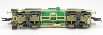 | kotlový vůz zelený s brzdařskou plošinou „AMOK“ |