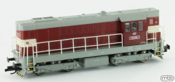 Popis   dieselová lokomotiva červená s šedou střechou, rámem a pojezdem a výstražným pruhem