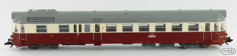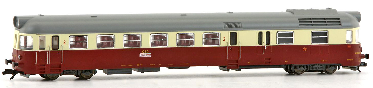 | motorový vůz červený-slonová kost s šedou střechou |