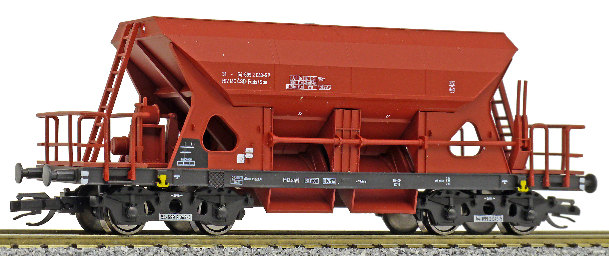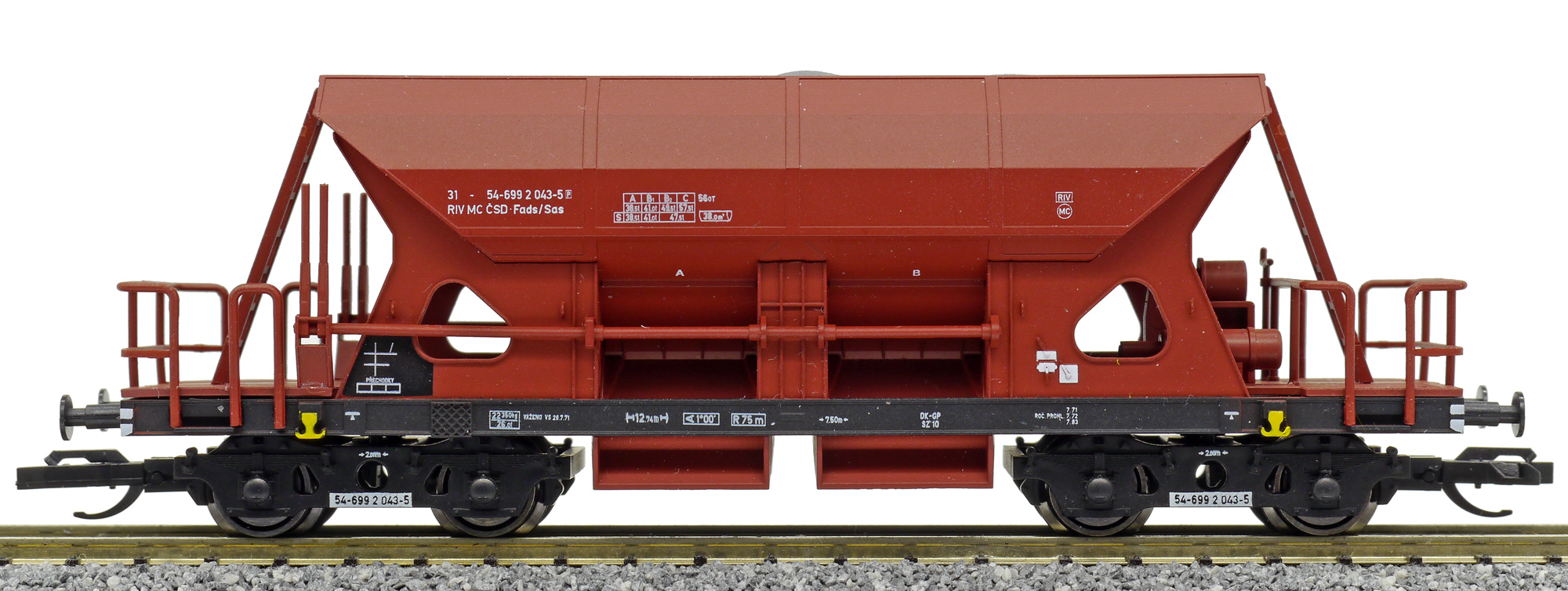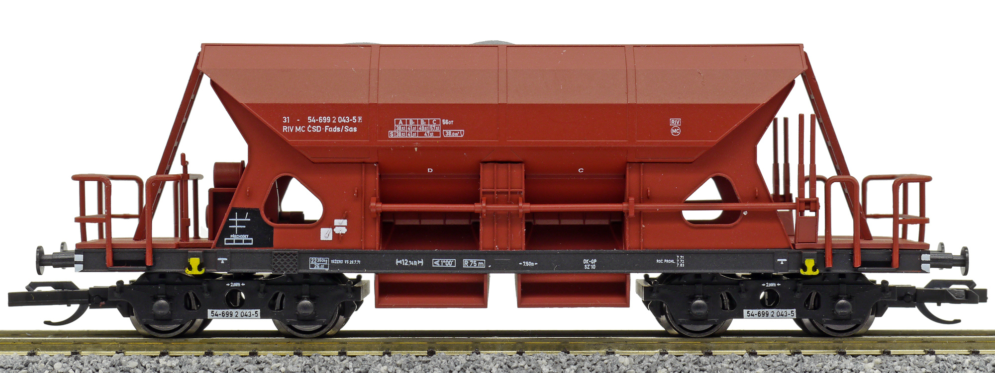 | • 31-54-699 2 043-5 | → | nákladní, s podvozky, pevný rozchod, ve vlastnictví železniční správy, RIV, PPV |