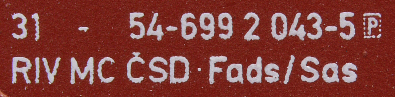 | • 31-54-699 2 043-5 | → | ČSD - Československé státní dráhy |