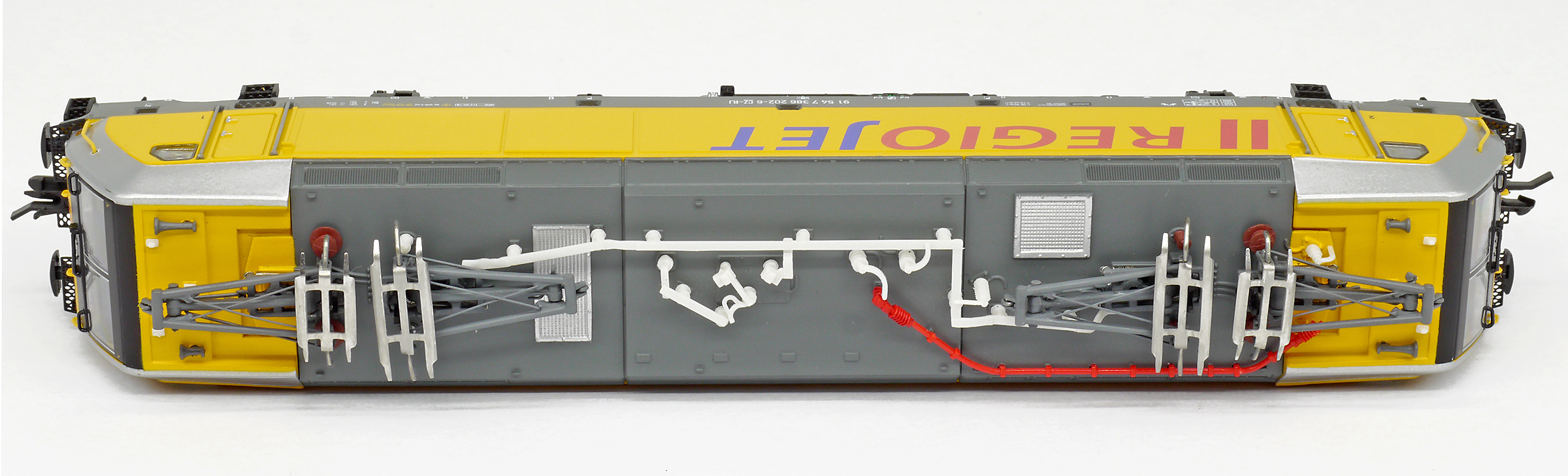 měřítko 1:120 - rozchod kolejí 12 mm osvětlení - 3 reflektory vpředu, 2 světla vzadu, přepínatelné podle směru jízdy 4 hnané nápravy 2 bandážované nápravy kinematika krátkého spřáhla (KKK) podle normy NEM 358 digitální rozhraní podle NEM 658 s konektorem PluX12 možný provoz s pantografem 158 mm - celková délka modelu přes nárazníky 4 - celkový počet náprav nebo rozložení náprav 300 g - hmotnost brutto - model včetně prodejního obalu 193 g - hmotnost netto - pouze model