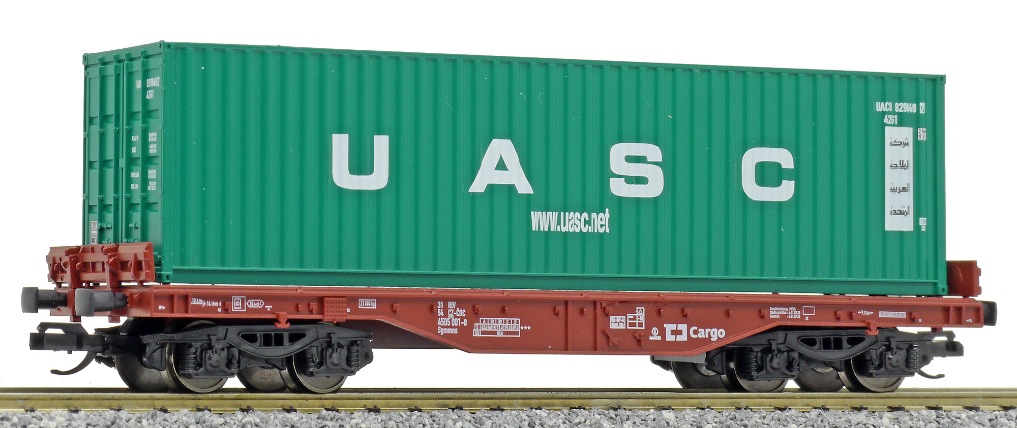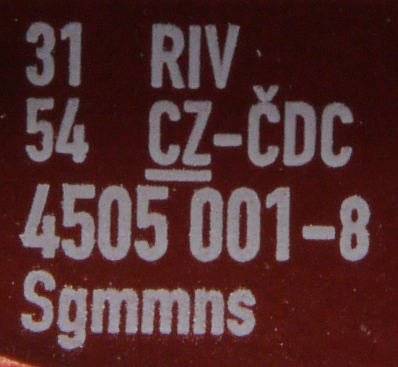 | • 31 54 4505 001-8 | → | nákladní, s podvozky, pevný rozchod, ve vlastnictví železniční správy, RIV, PPV |