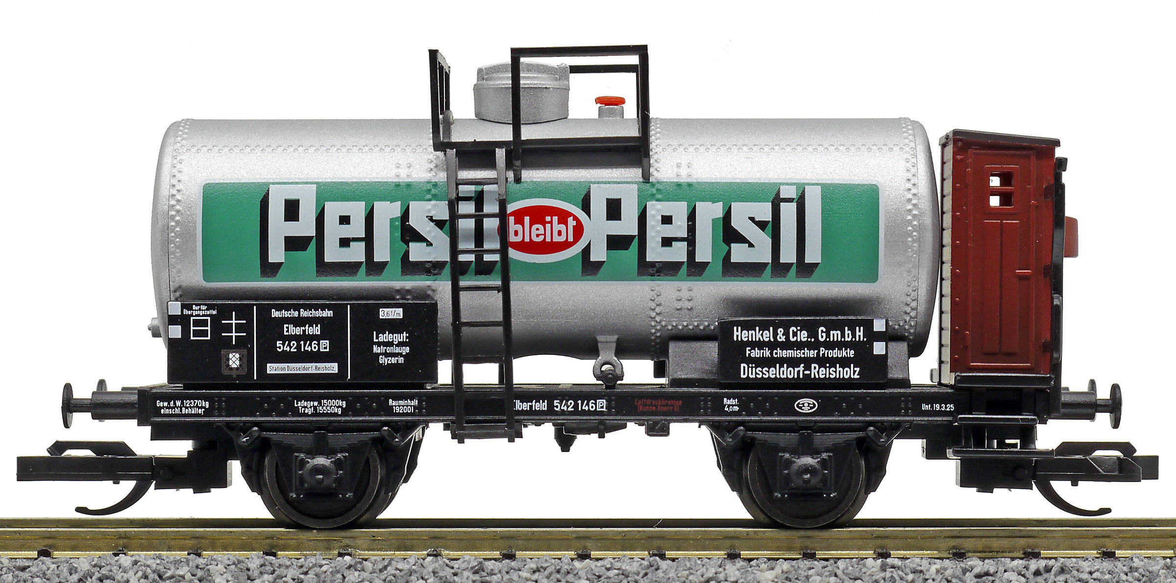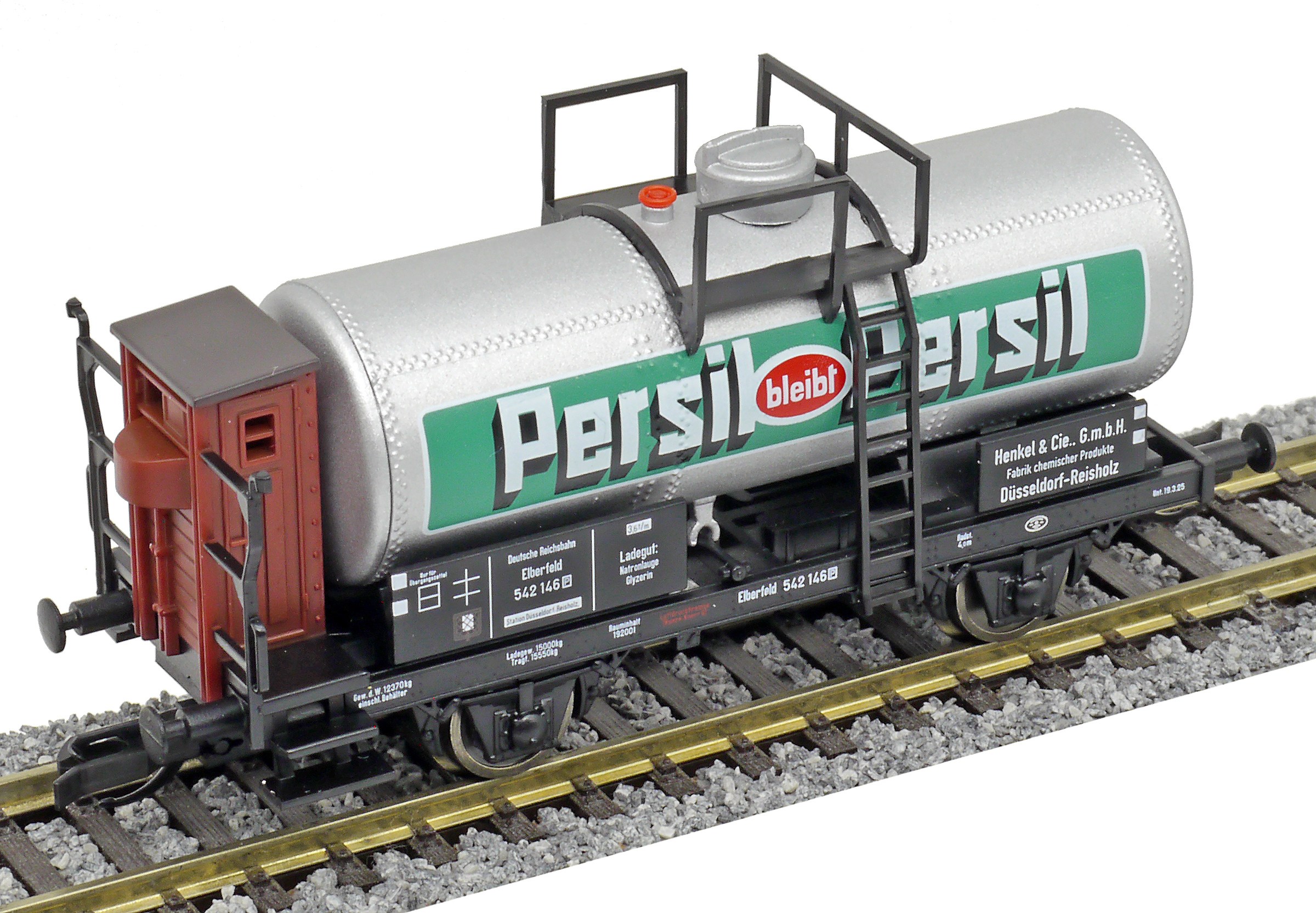 | kotlový nákladní vůz stříbrný s brzdařskou budkou „Persil“ |