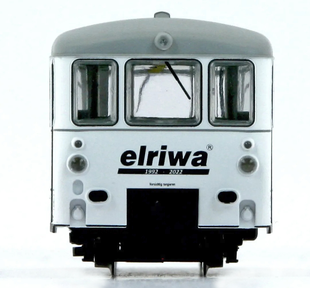 | motorový vůz bílý s reklamním potiskem „30 Jahre elriwa“ |