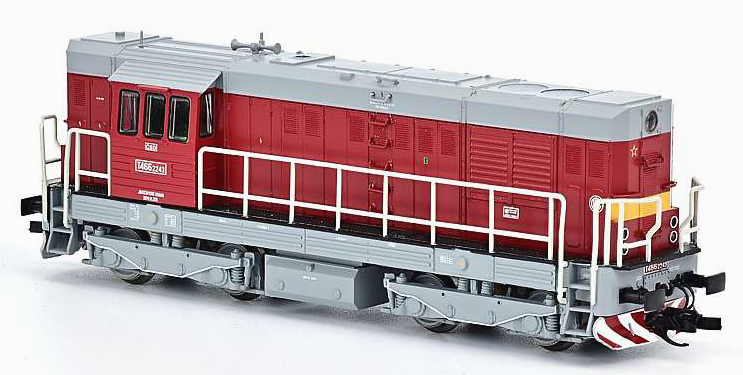 | dieselová lokomotiva červená-šedá střecha, rám a pojezd |