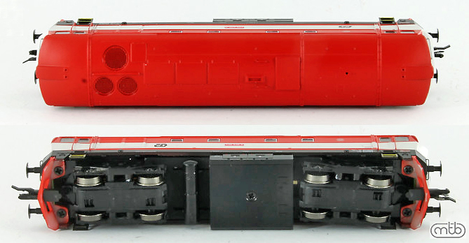 měřítko 1:120 - rozchod kolejí 12 mm osvětlení - 3 reflektory vpředu, 2 světla vzadu, přepínatelné podle směru jízdy 4 hnané nápravy 0 bandážovaných náprav digitální rozhraní podle NEM 658 s konektorem PluX16 setrvačník 137 mm - celková délka modelu přes nárazníky 4 - celkový počet náprav nebo rozložení náprav 300 g - hmotnost brutto - model včetně prodejního obalu 205 g - hmotnost netto - pouze model