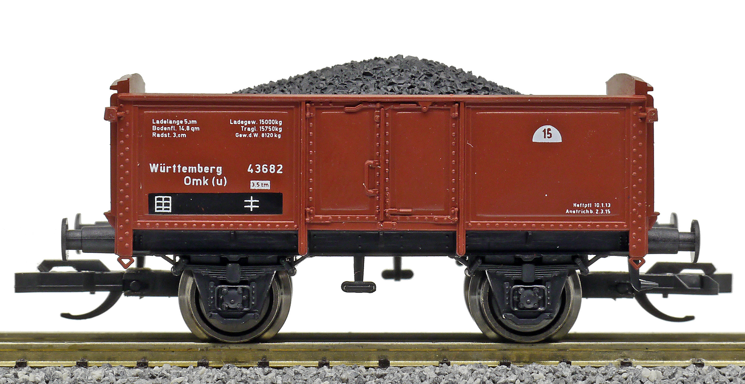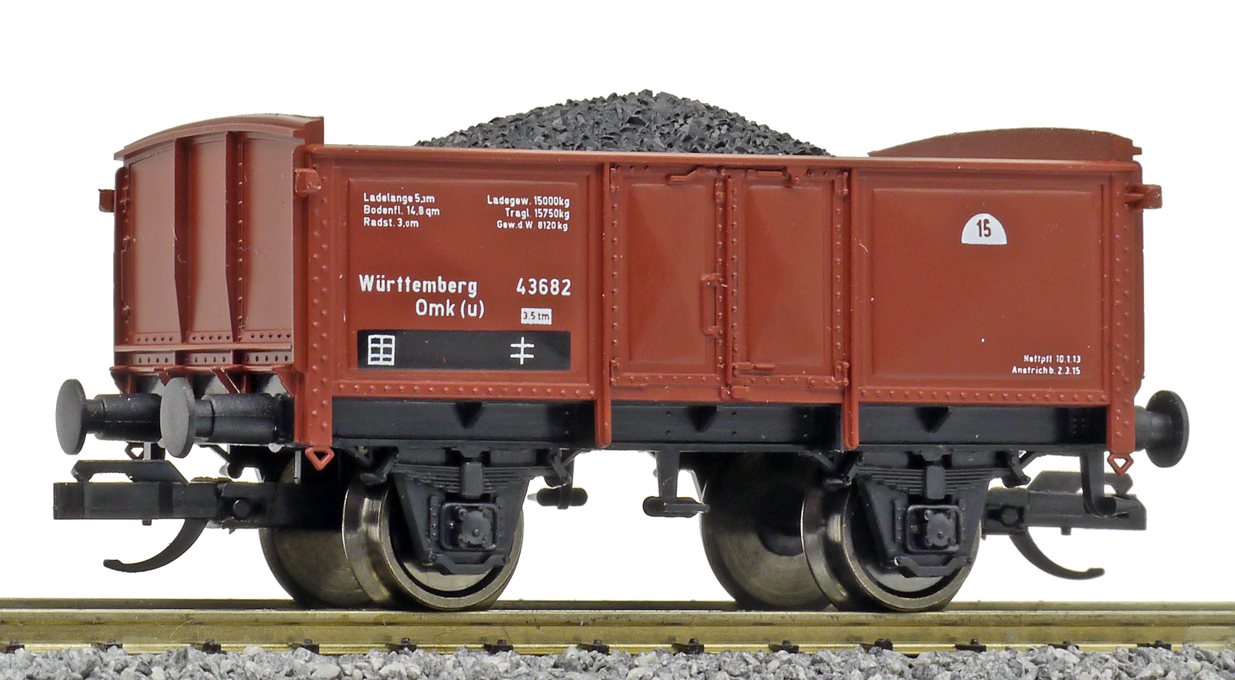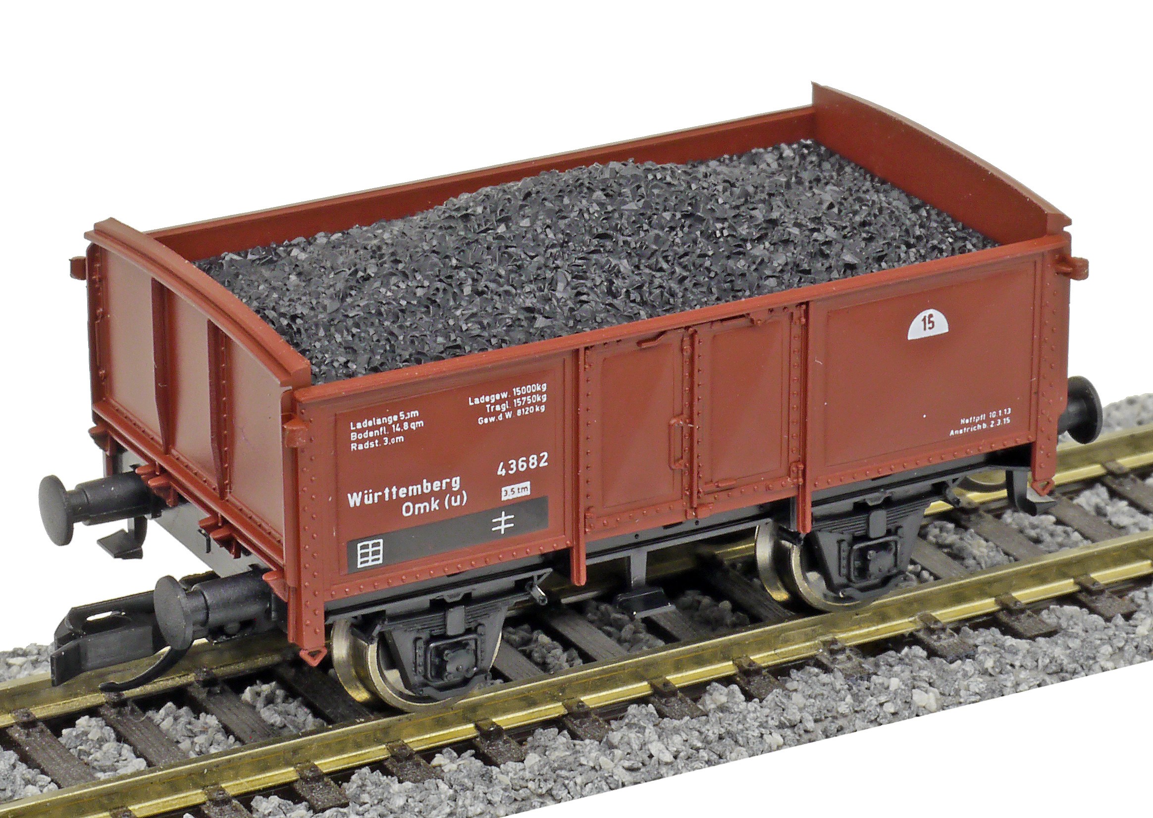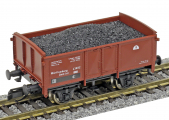 | otevřený nákladní vůz červenohnědý ložený uhlím |