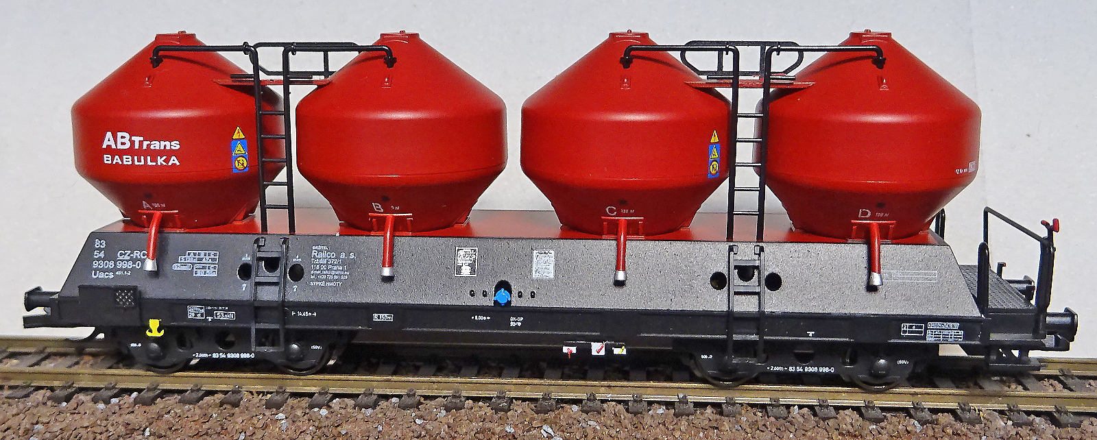 | níkladní samovýsypný vůz černý s červenými nádobami „ABTrans - BABULKA“ |