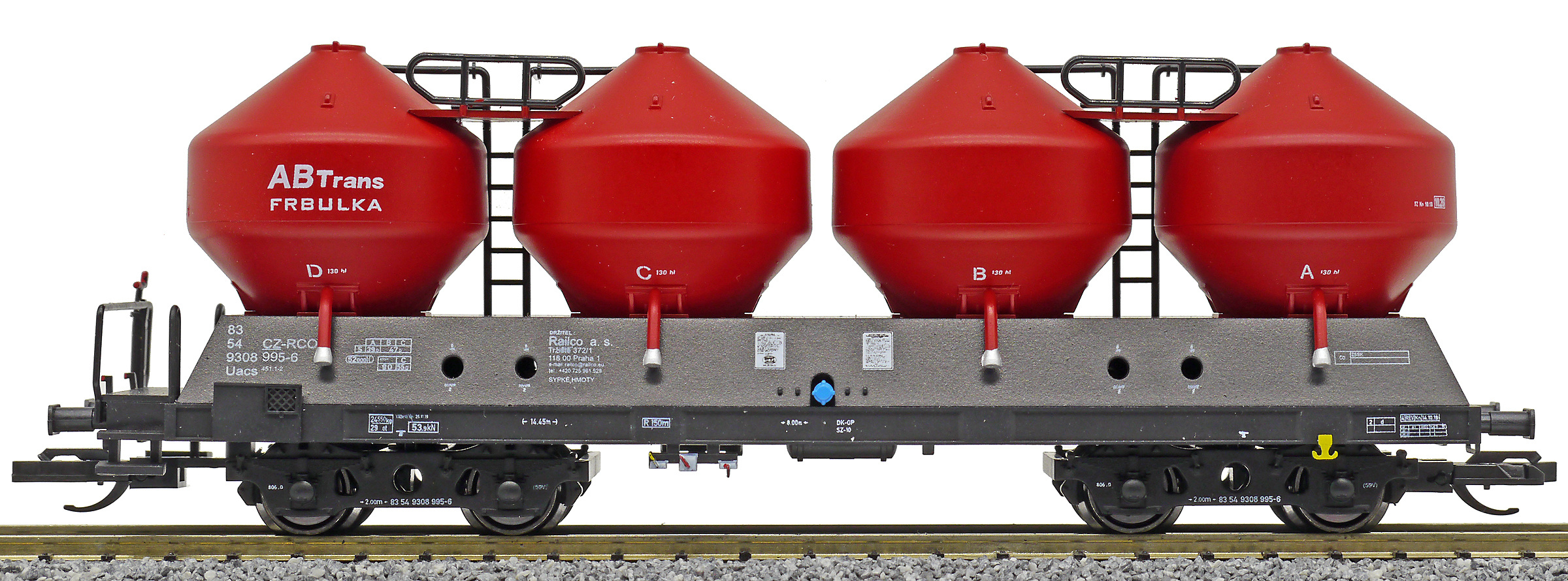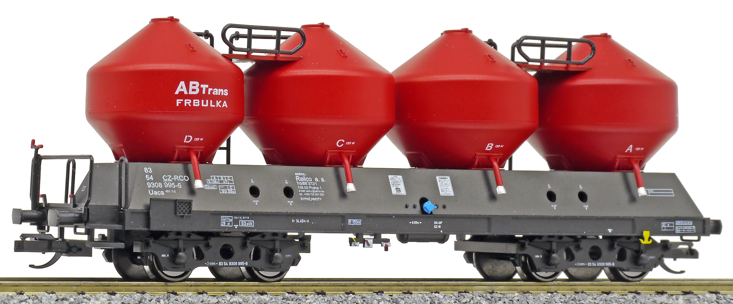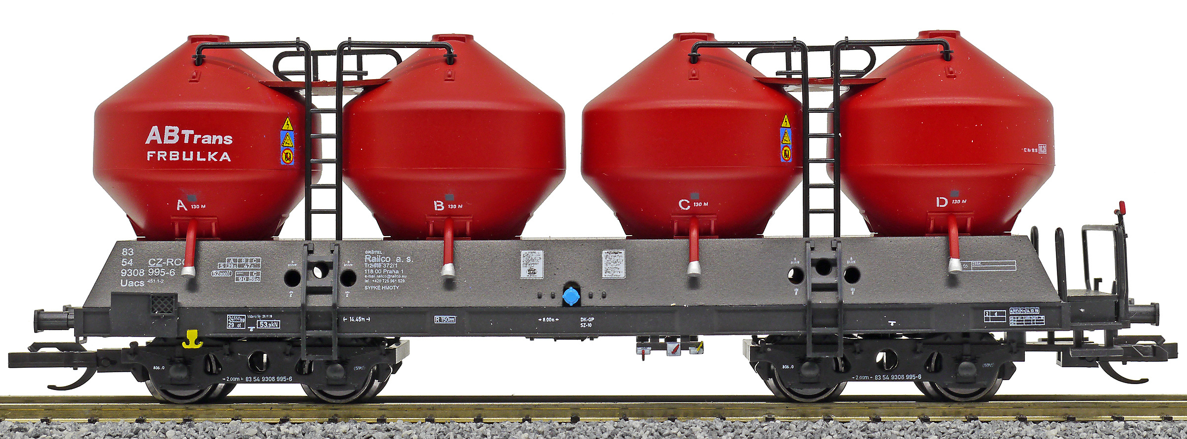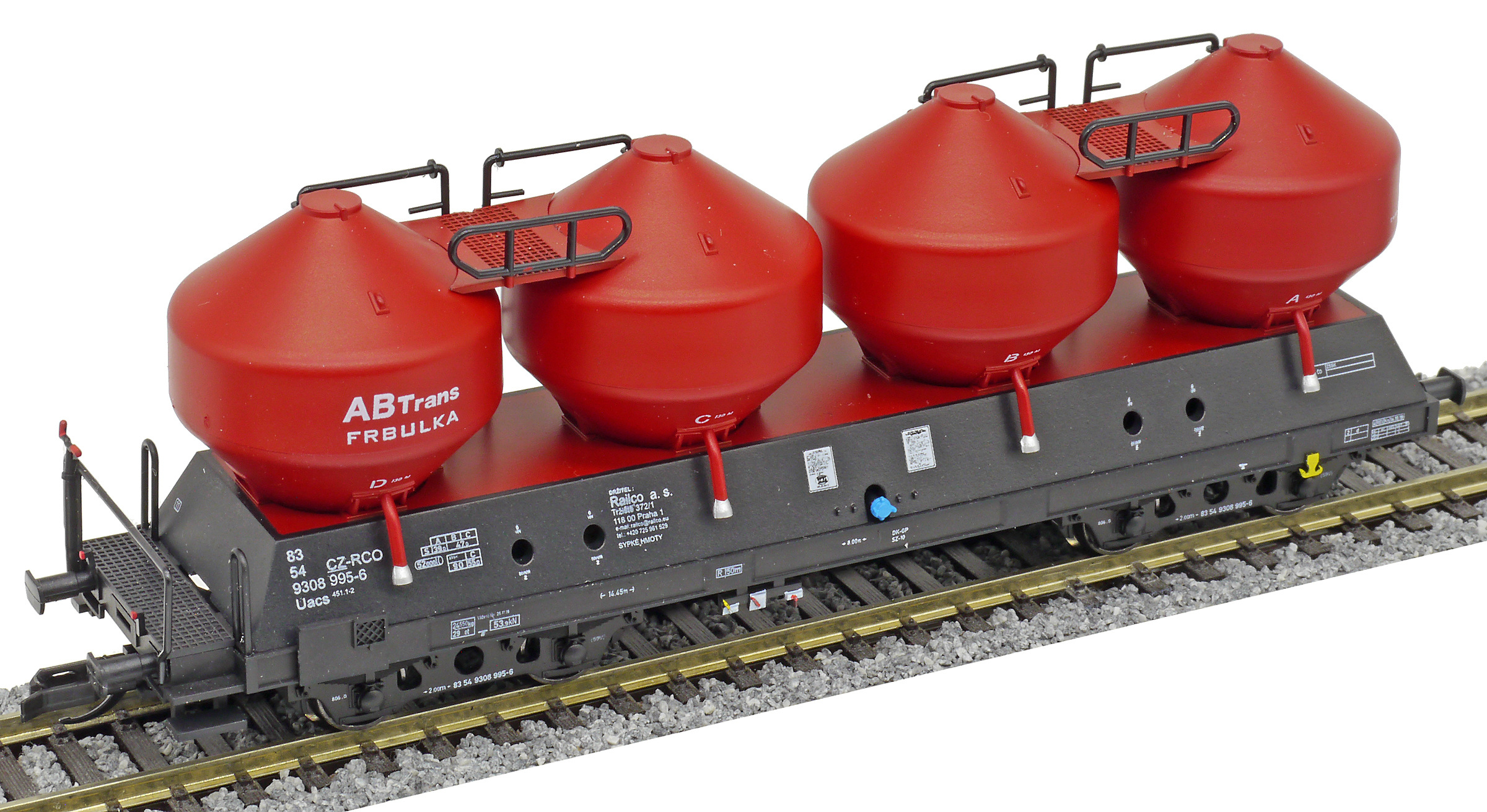 | nákladní samovýsypný vůz černý s červenými nádobami „ABTrans - FRBULKA“ |
