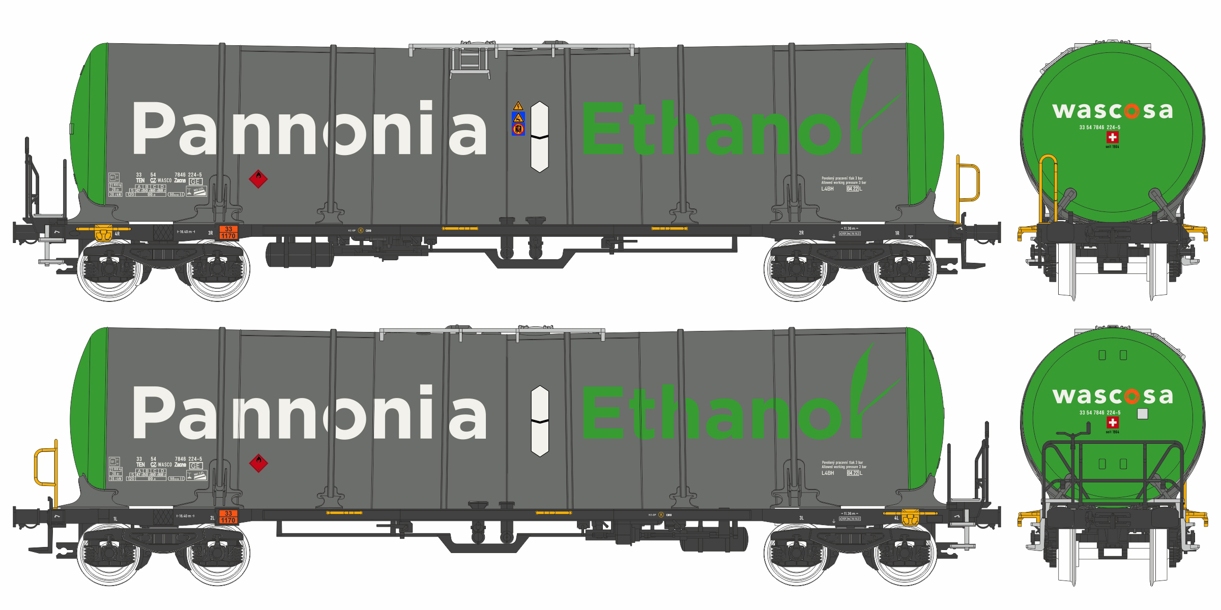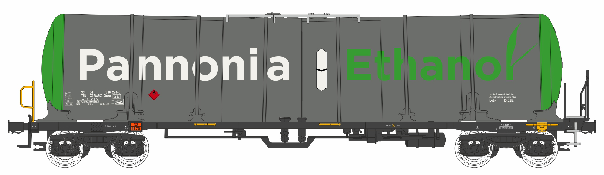 | kotlový vůz šedý-zelený s logem „Pannonia Ethanol“ |