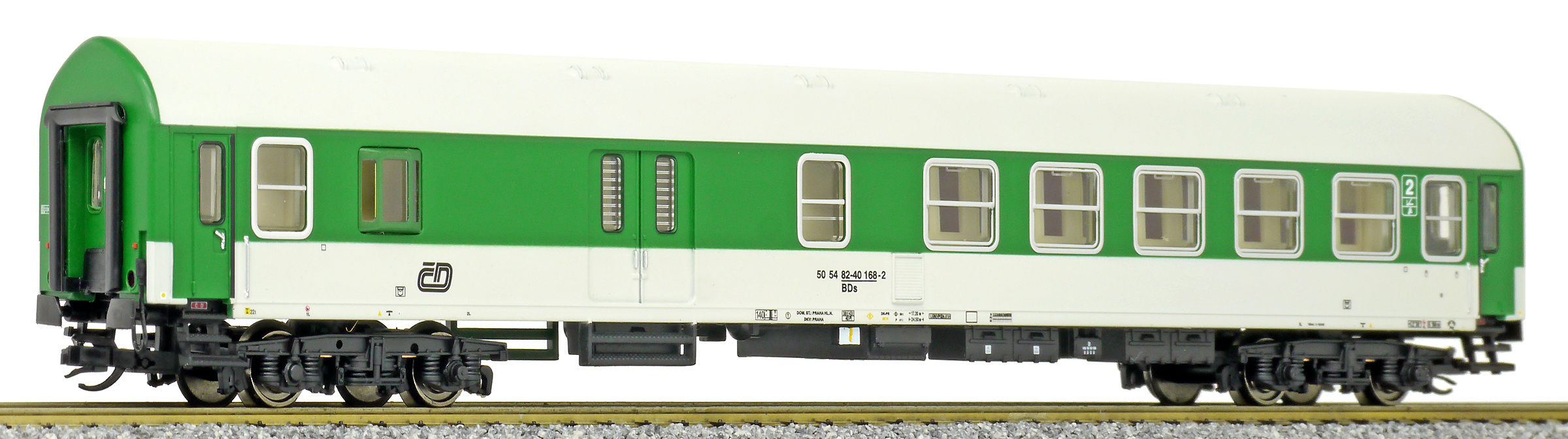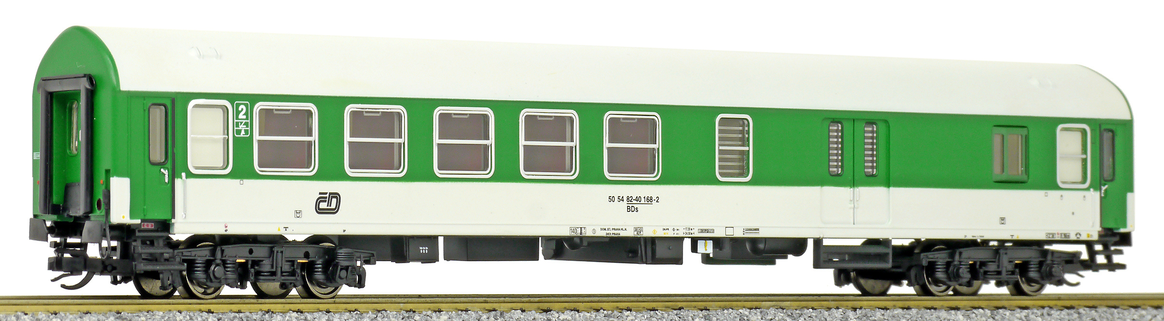 | rychlíkový vůz zelený-světle šedý 2. tř. se zavazadlovým oddílem |