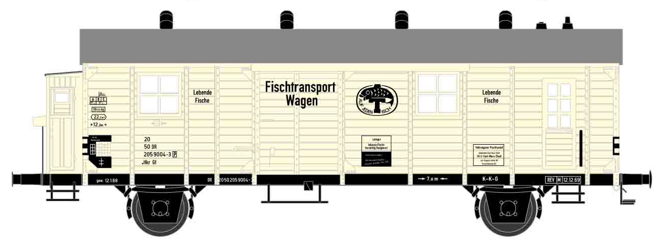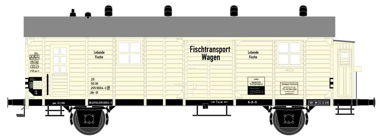 | chladící nákladní vůz béžový na přepravu ryb „Kraftwerksfische-II“ |