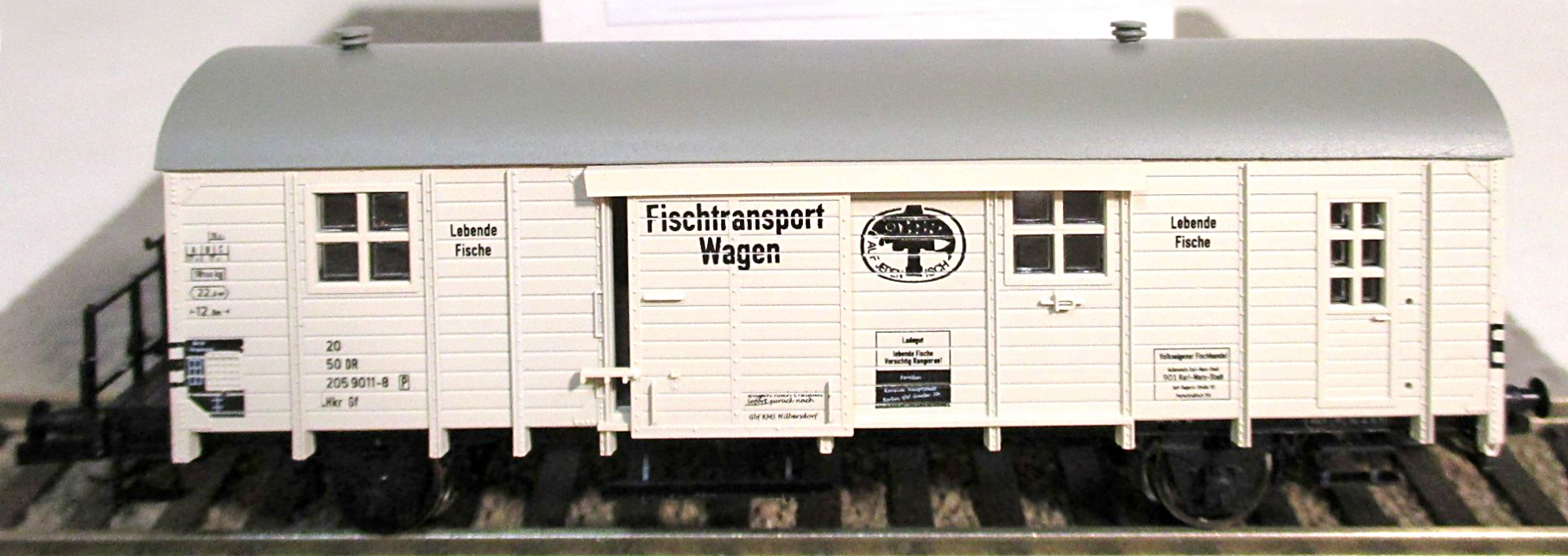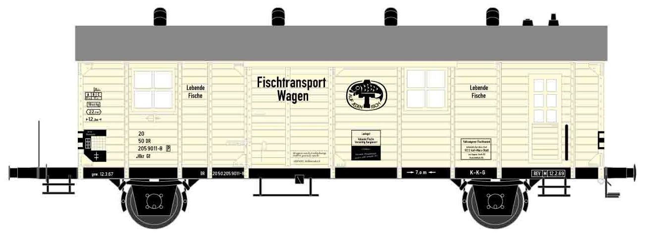 | chladící nákladní vůz béžový na přepravu ryb „Kraftwerksfische-III“ |