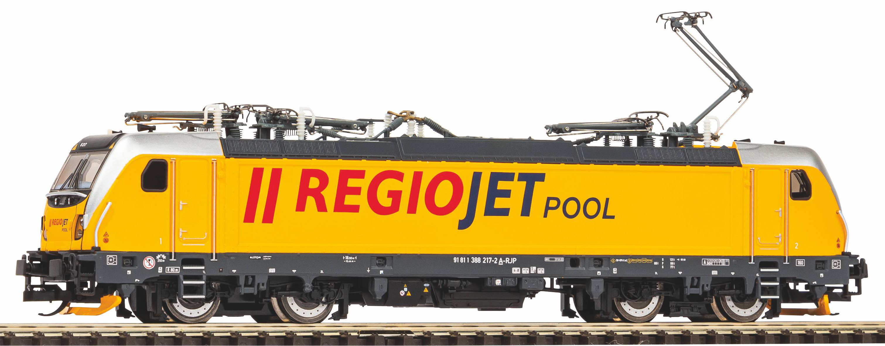 | elektrická lokomotiva v barevném schematu „RegioJet“ |