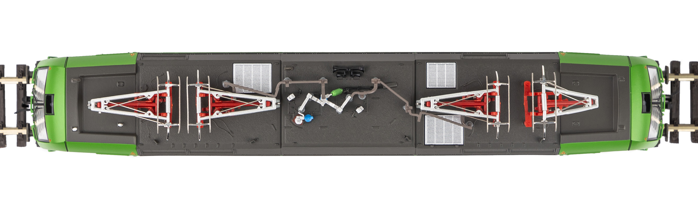 měřítko 1:120 - rozchod kolejí 12 mm osvětlení - 3 reflektory vpředu, 2 světla vzadu, přepínatelné podle směru jízdy 4 hnané nápravy 2 bandážované nápravy kinematika krátkého spřáhla (KKK) podle normy NEM 358 Konektor setrvačník minimálni projížděný poloměr 310 mm 158 mm - celková délka modelu přes nárazníky 4 - celkový počet náprav nebo rozložení náprav