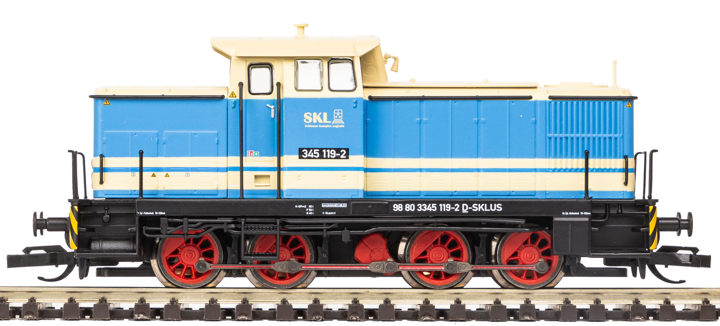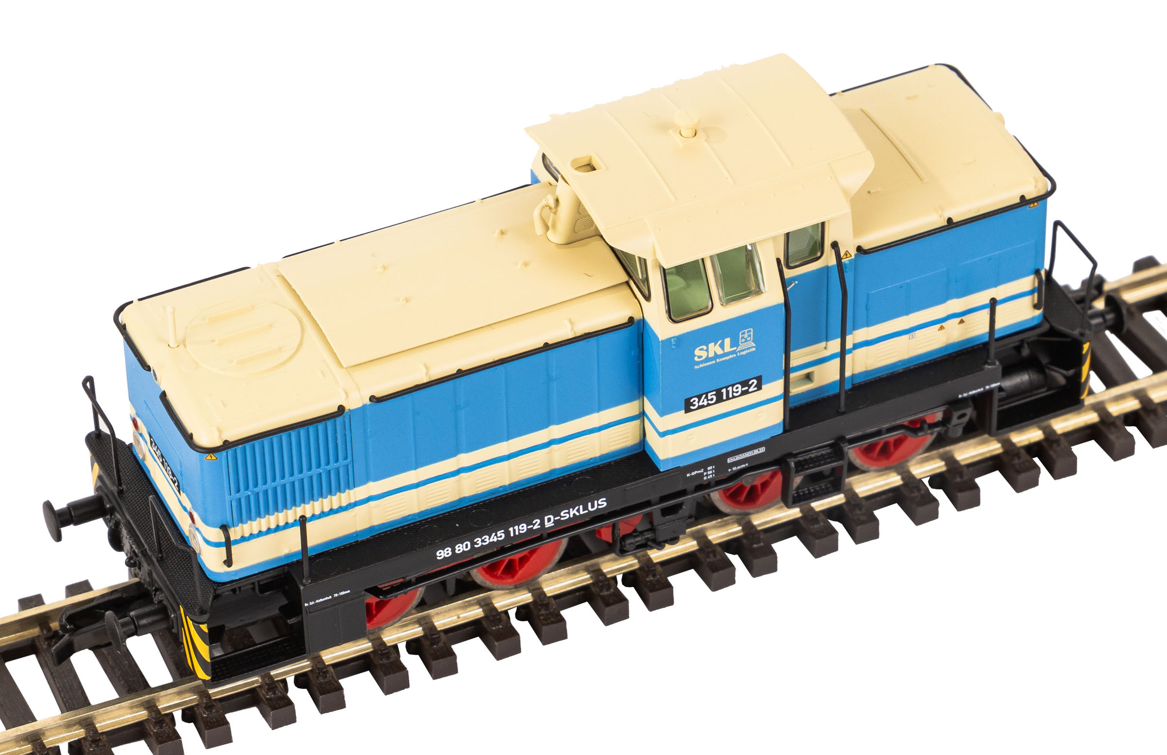 měřítko 1:120 - rozchod kolejí 12 mm osvětlení - 3 reflektory vpředu, 2 světla vzadu, přepínatelné podle směru jízdy osvětlení - žárovky 2 bandážované nápravy kinematika krátkého spřáhla (KKK) podle normy NEM 358 digitální rozhraní podle NEM 658 s konektorem PluX16 91 mm - celková délka modelu přes nárazníky 4 - celkový počet náprav nebo rozložení náprav