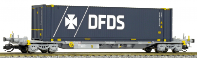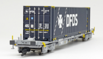 | kontejnerový vůz „IFA” šedý ložený 45' kontejnerem „DFDS” |