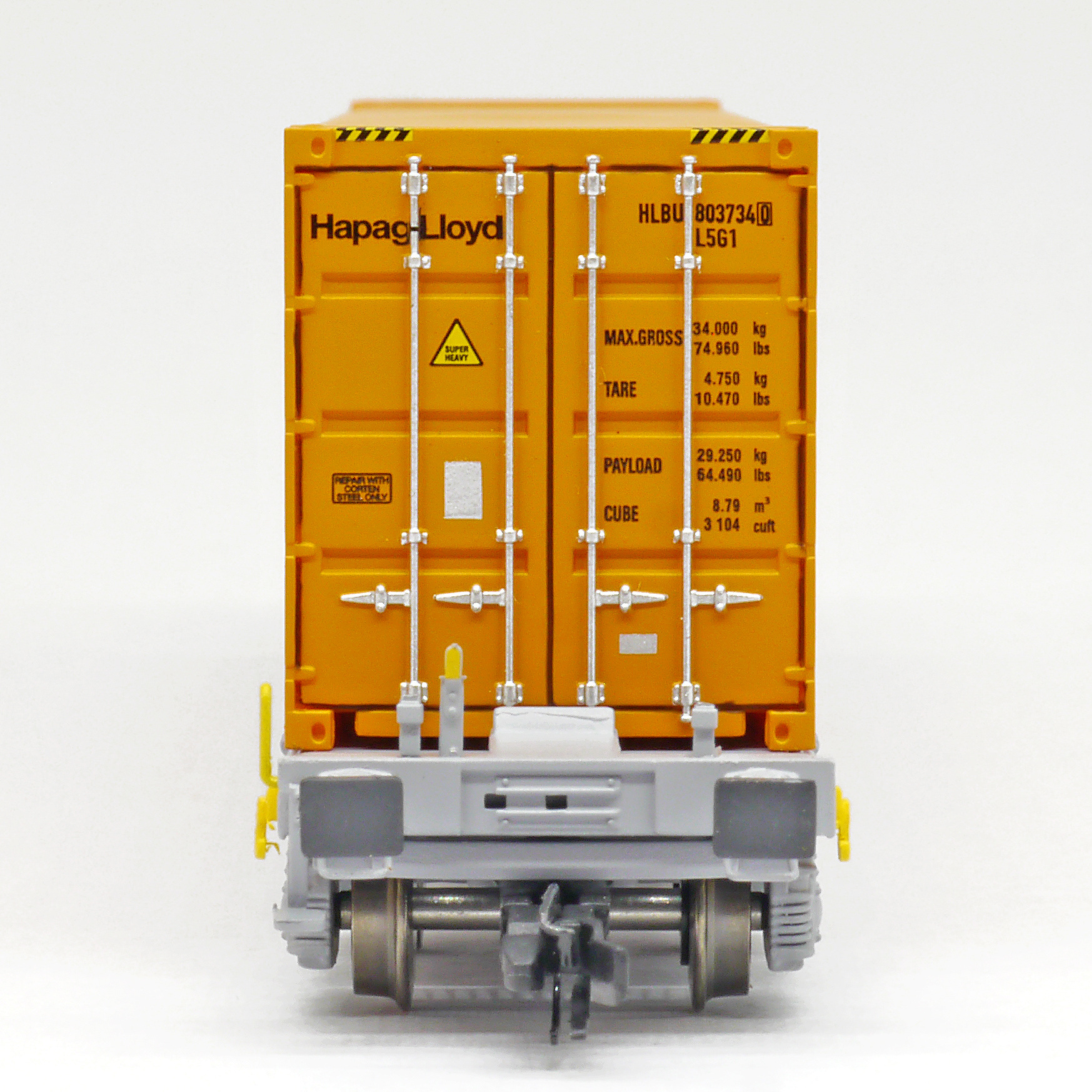 | kontejnerový vůz „IFA” šedý ložený 45' kontejnerem „Hapag-Lloyd” |