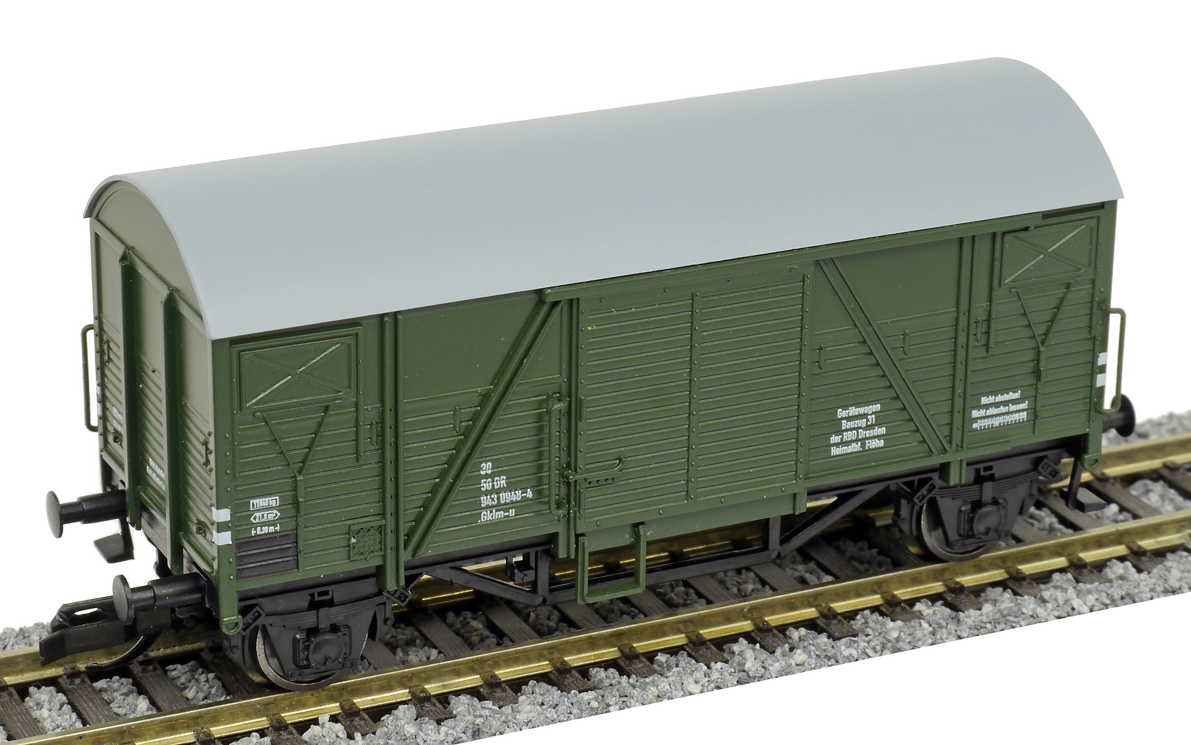 | nákladní vůz tmavě zelený s šedou střechou do pracovního vlaku |