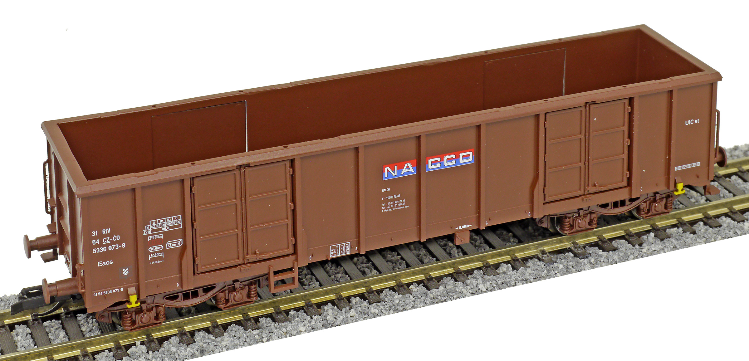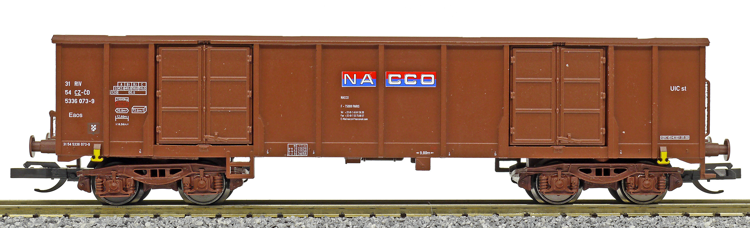 měřítko 1:120 - rozchod kolejí 12 mm kinematika krátkého spřáhla (KKK) podle normy NEM 358 117 mm - celková délka modelu přes nárazníky 4 - celkový počet náprav nebo rozložení náprav 130 g - hmotnost brutto - model včetně prodejního obalu