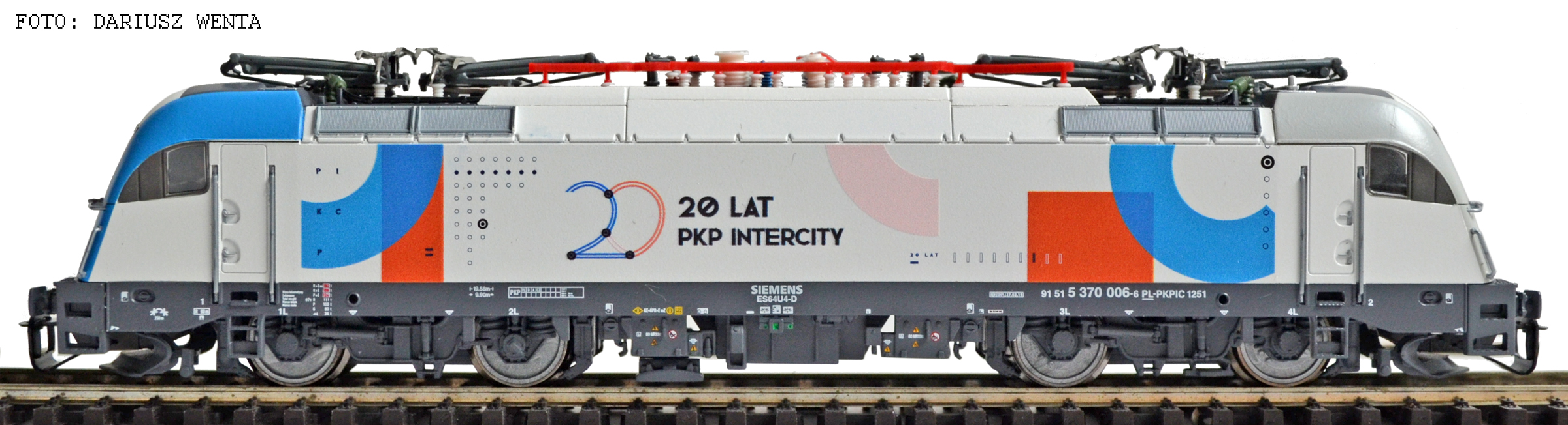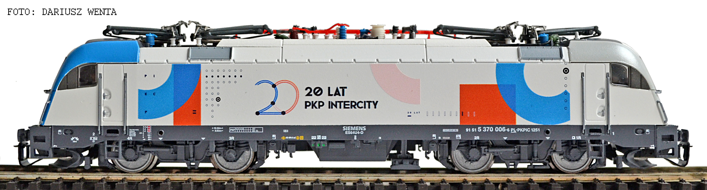 | elektrická lokomotiva s reklamním potiskem „20 Jahre PKP Intercity“ |