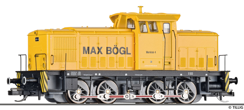 | dieselová lokomotiva oranžová „Max Bögl Bauservice“ |