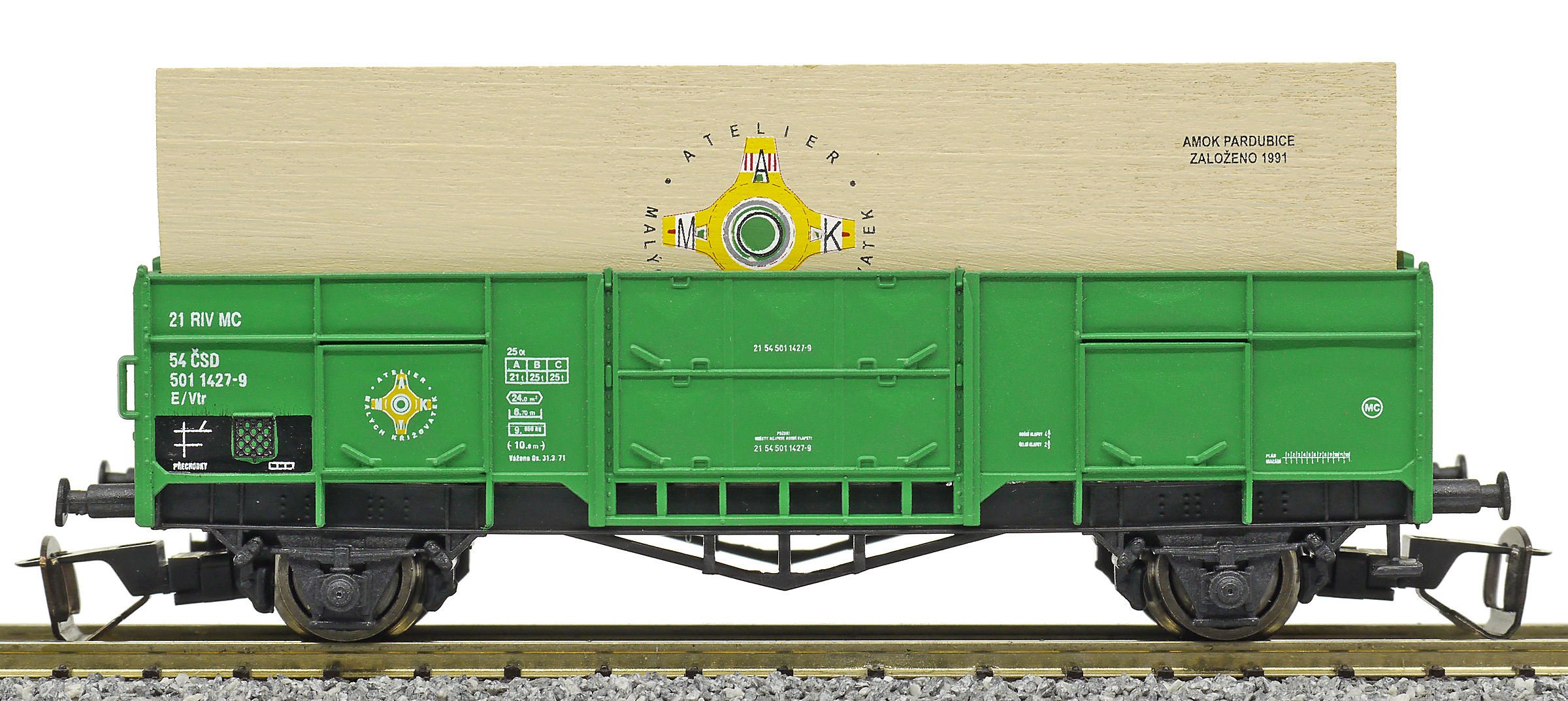 | • 21 54 501 1427-9 | → | nákladní, nezávislé nápravy, pevný rozchod, ve vlastnictví železniční správy, RIV, PPV |