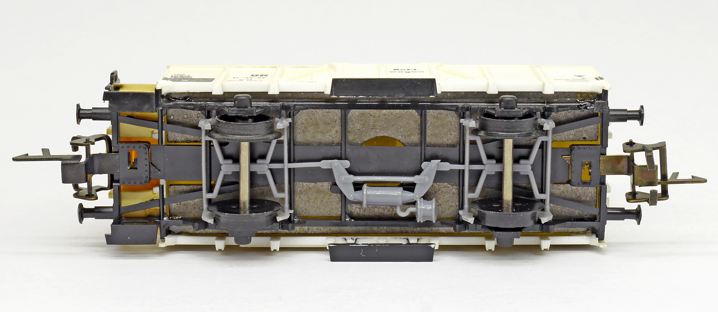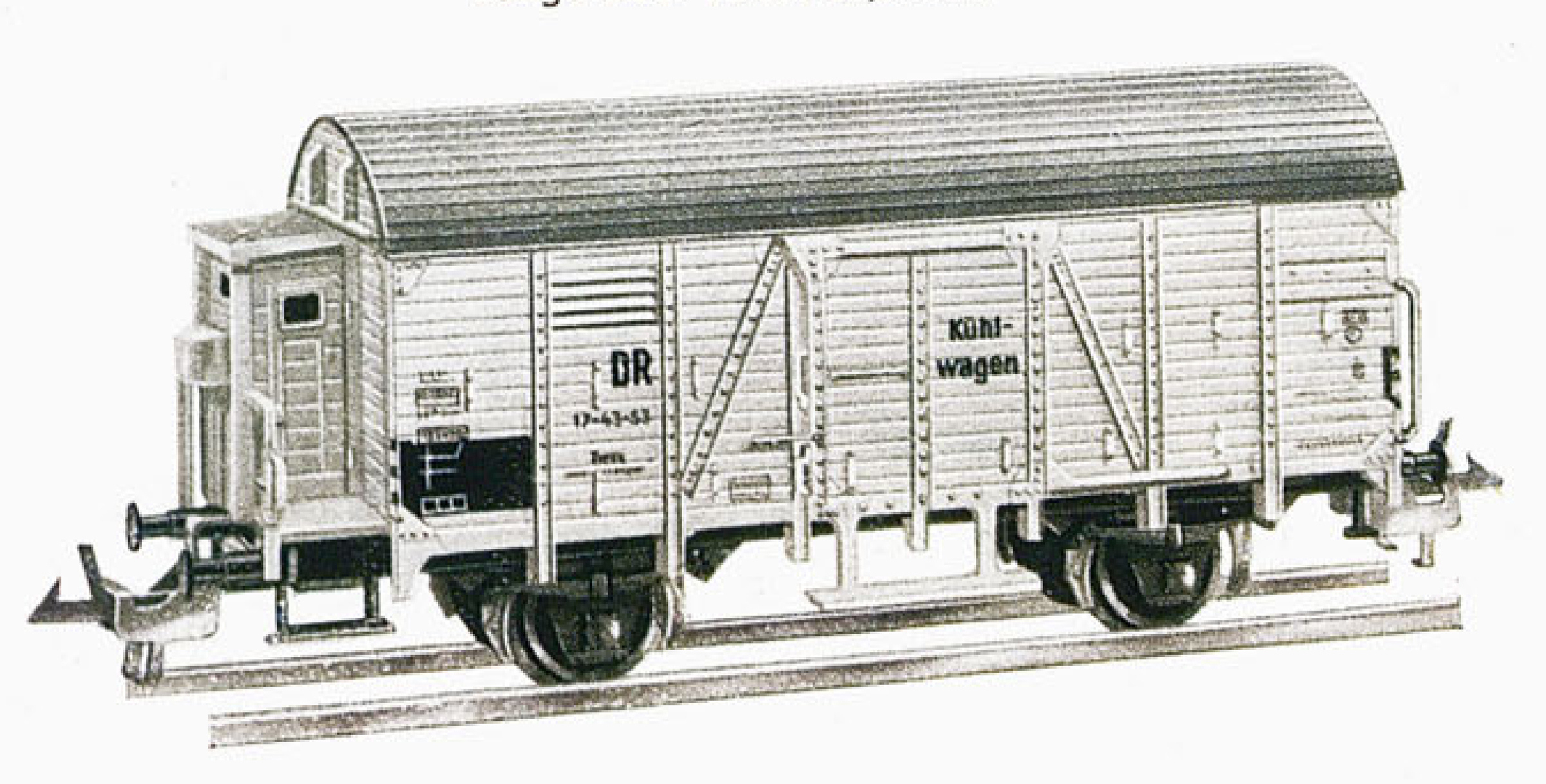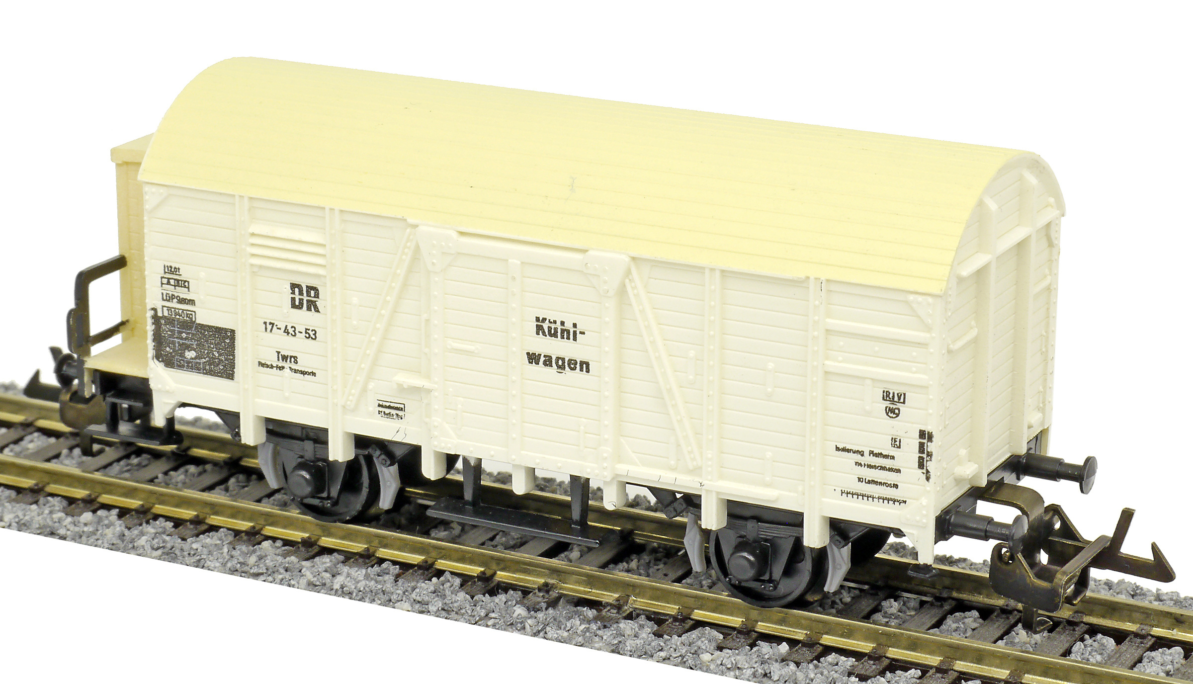 nákladní chladící vůz bílý s krémovou střechou „Kühlwagen“ a s brzdařskou budkou